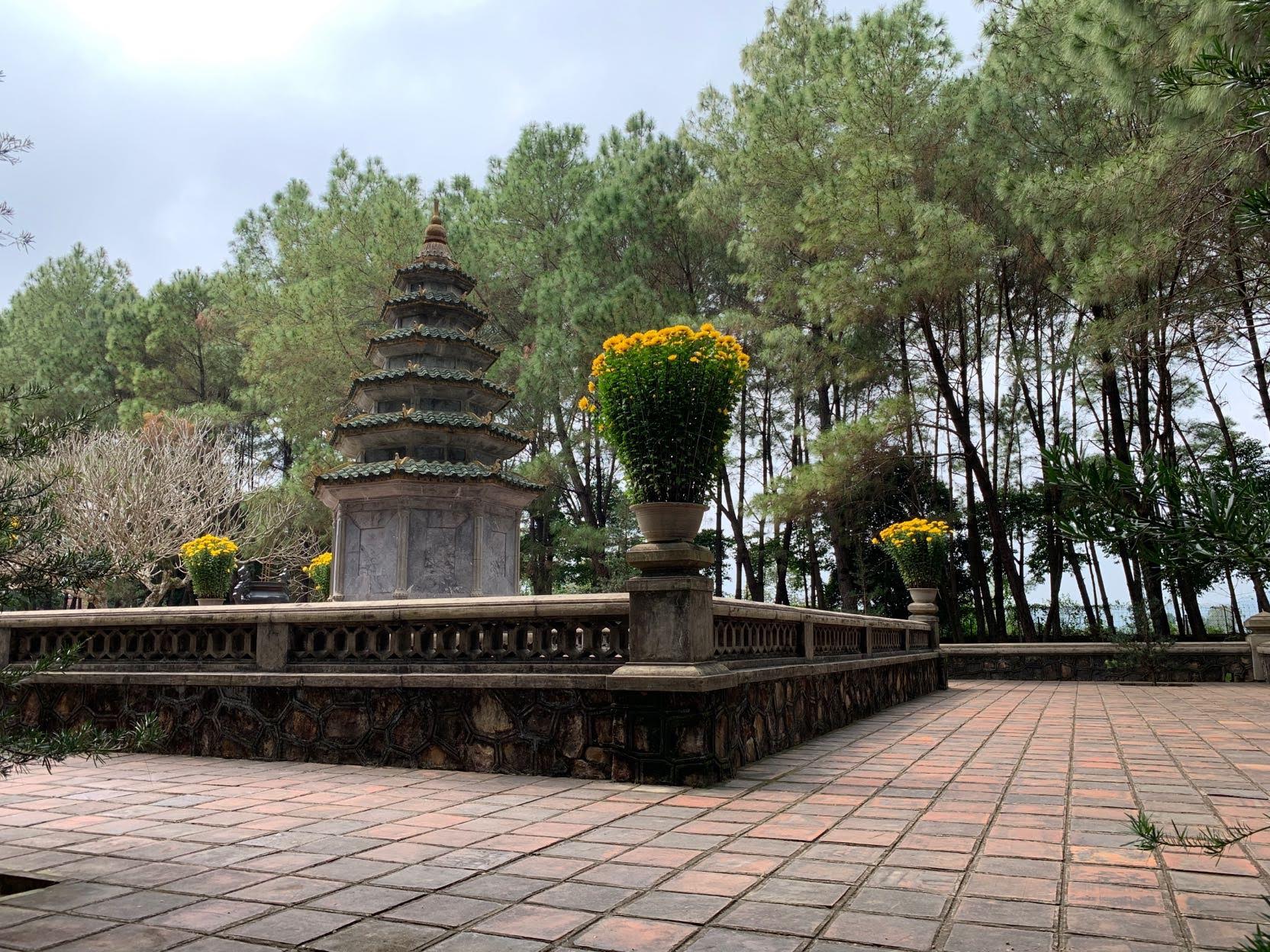 Thien Mu (Heavenly Lady) Pagoda is a historic temple, whose iconic seven-story pagoda is basically the unofficial symbol of Hue, which used to be the capital of Vietnam from 1802 – 1945 (followed by Saigon, and now currently, Hanoi). Our boat pulled up to the “dock” and we walked up the steps. The main pagoda itself, which is all you can see from the water view, is truly a sight to behold. The grounds behind it are large and beautiful as well, and still to this day host many monks.