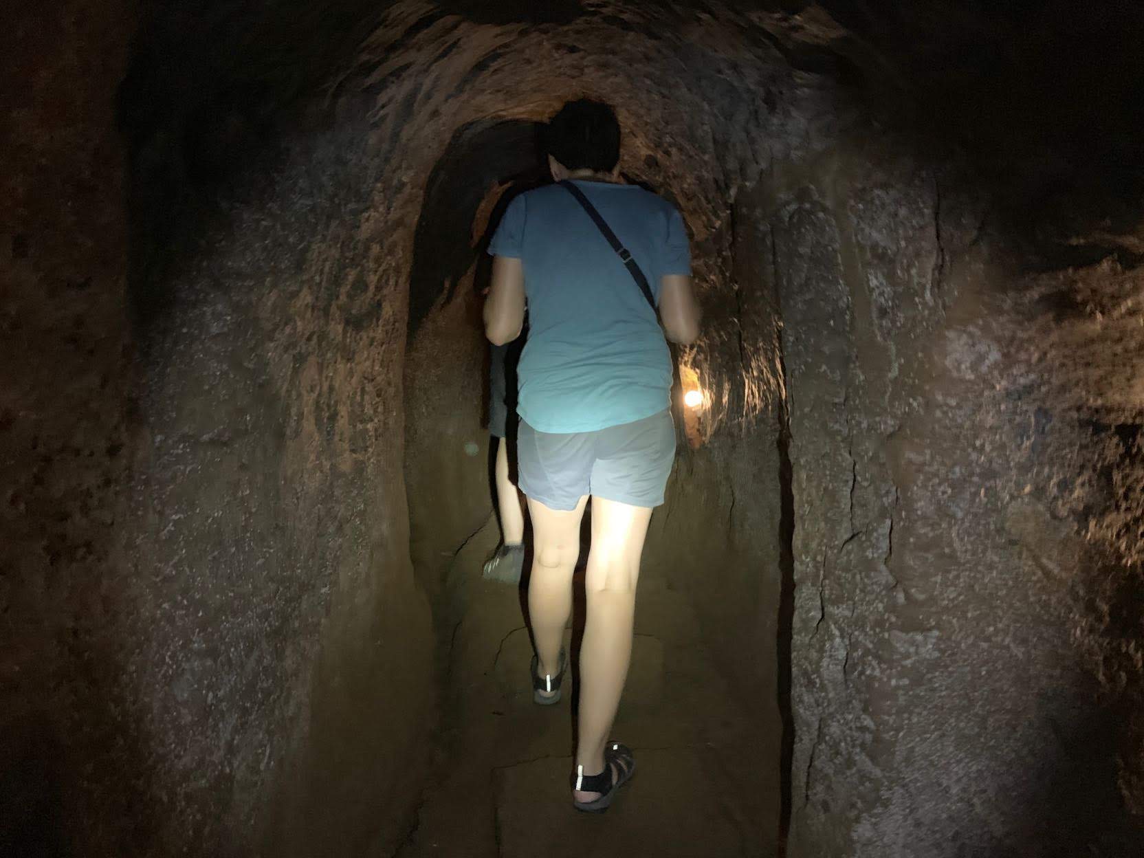 Walking through the claustrophobic Vinh Moc Tunnels.