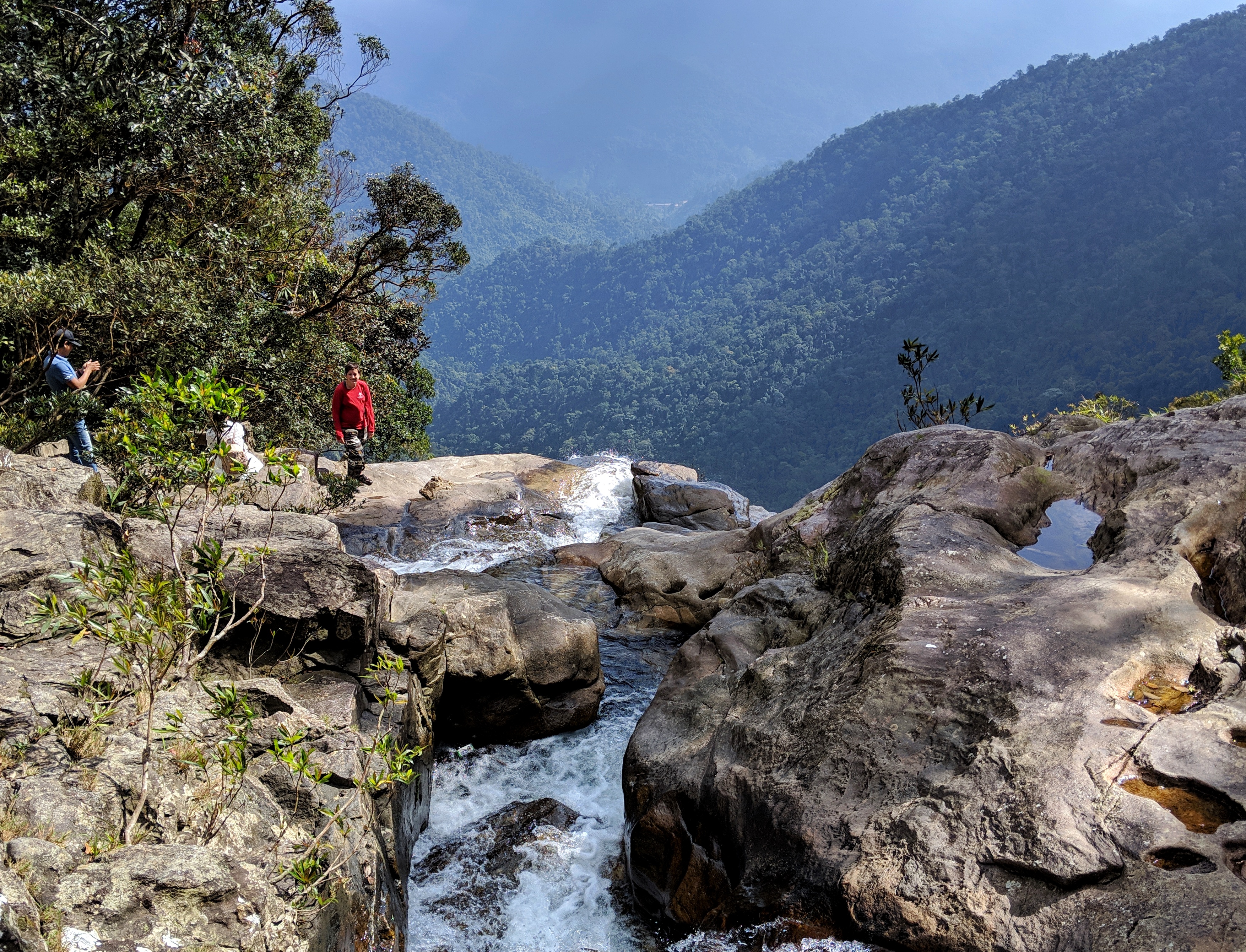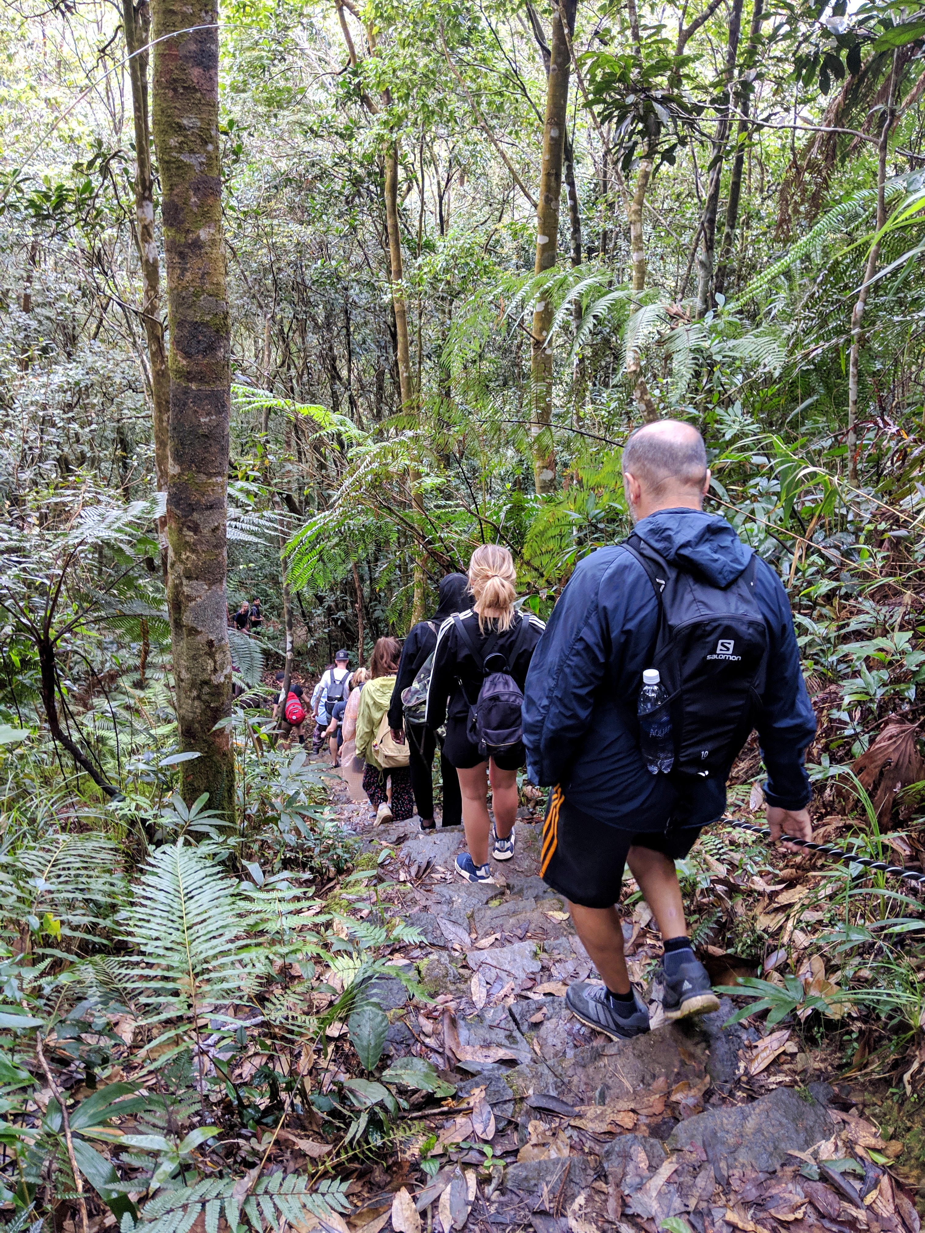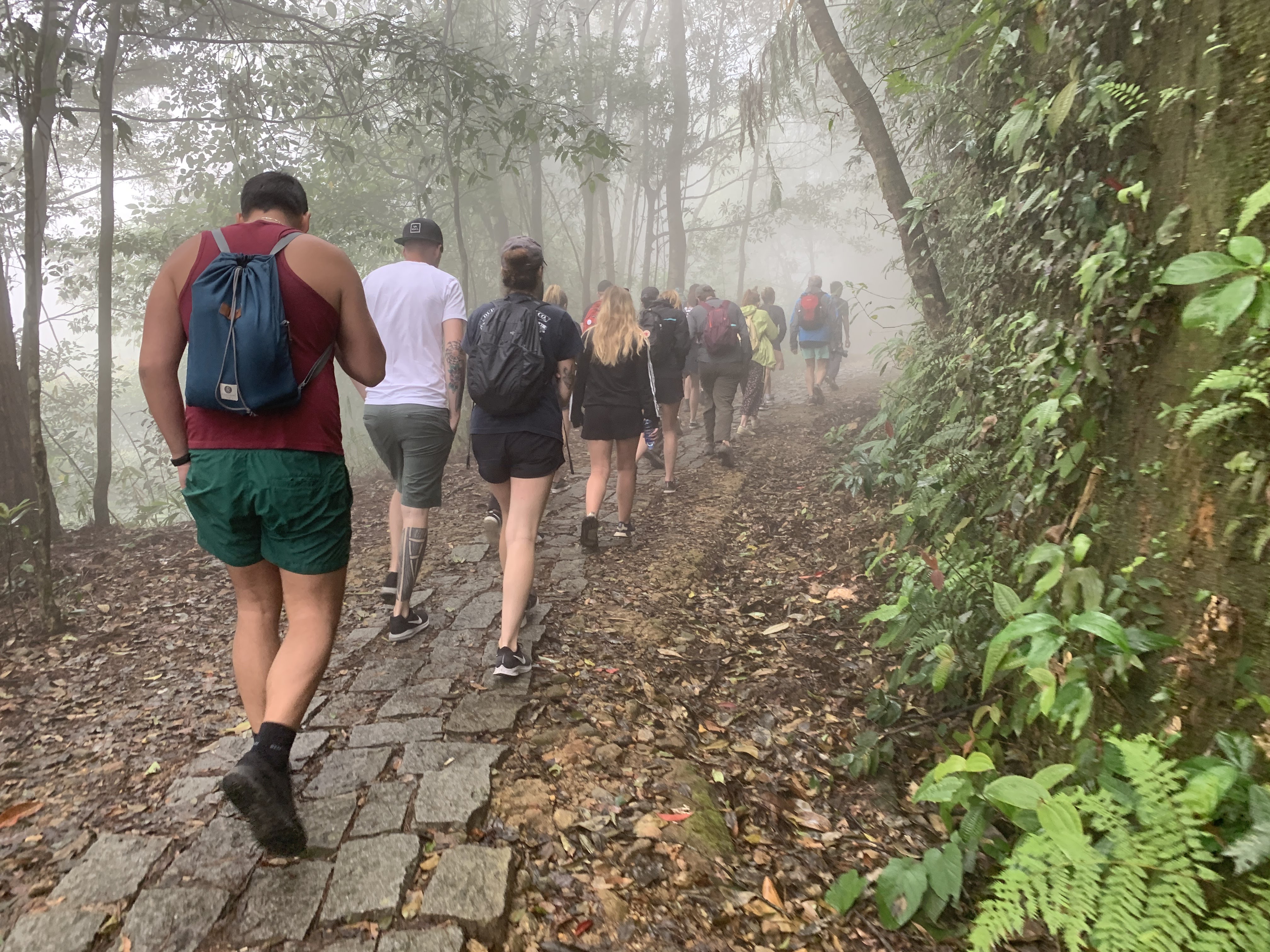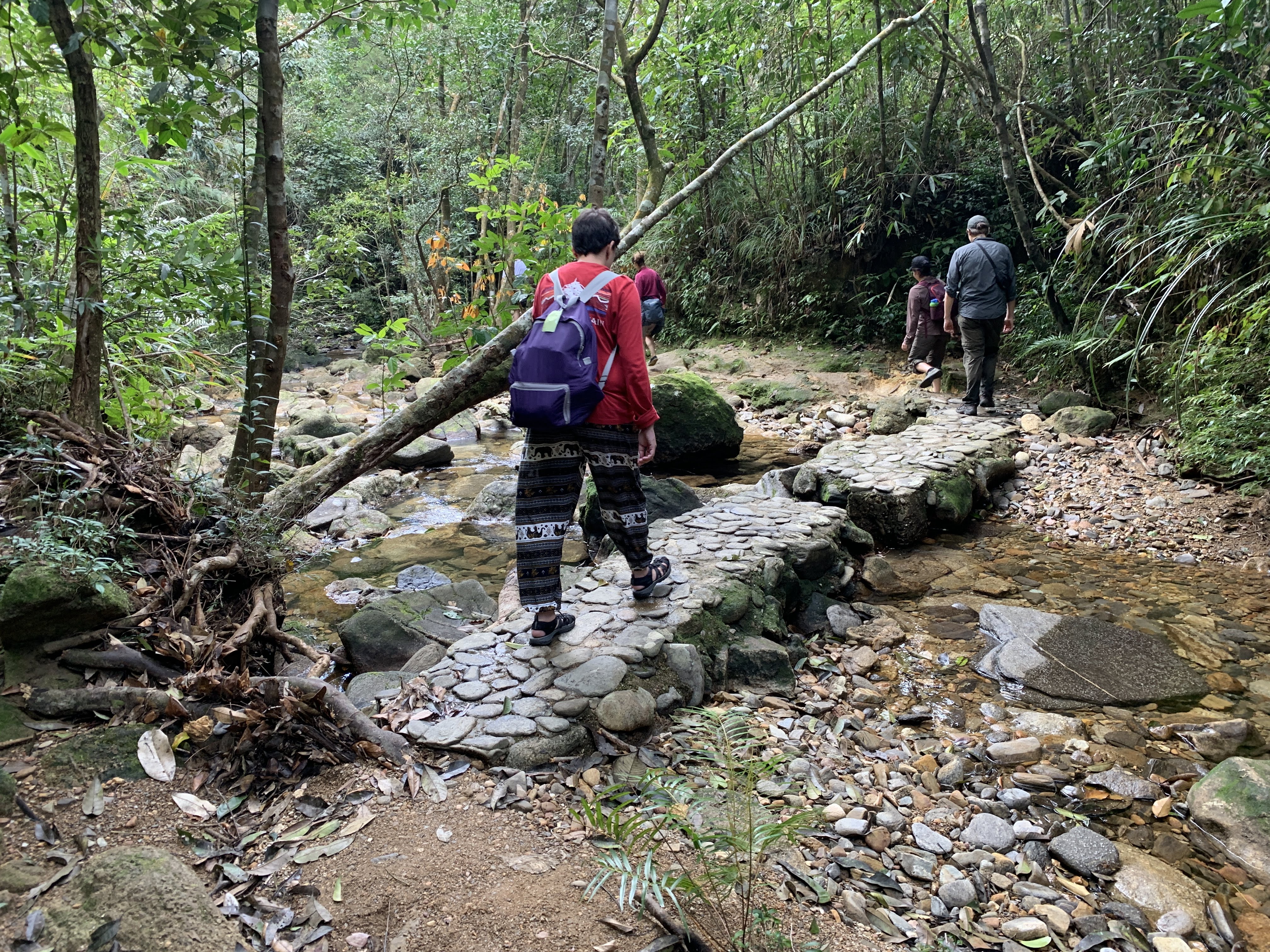 Isabel loved that last one. It didn’t keep her up late at night going down an internet rabbit hole reading all about leeches and what they do to your body, or anything. A far cry from the previous day’s journey, where we were the young whippersnappers of the group, almost everyone on today’s journey seemed to be in their early 20’s. Upon arrival at Bach Ma, the driver ascended the windy, curved road up the mountain. The drive and the view reminded us of home, like if Mount Tam or Big Sur had a touch of Jurassic Park to it. We got out at the top, and began our trek. As much as my head was on a swivel taking in our surroundings (we’re in the middle of the jungle!), I also had to keep my head down, constantly planning my next step. The stone pathway was cool, but definitely slowed me down (thank you, random gout flare-ups).