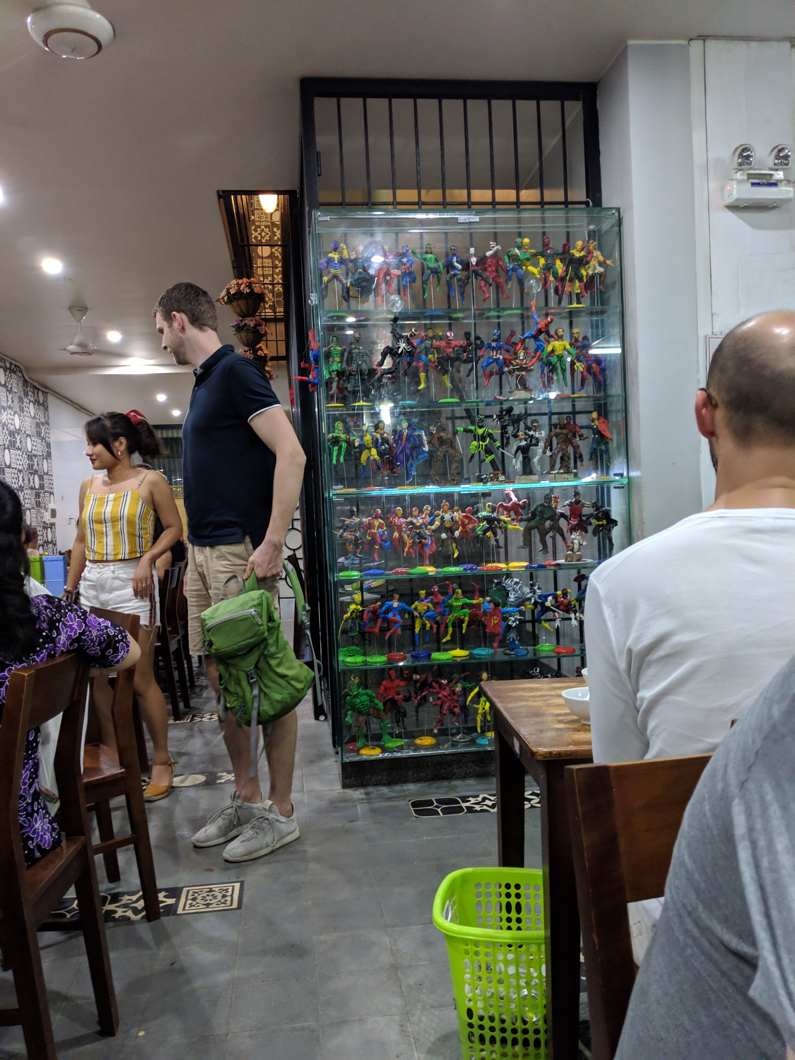 The owner of Mr. Hanh’s displays his 7-year old son’s play-doh comic characters.