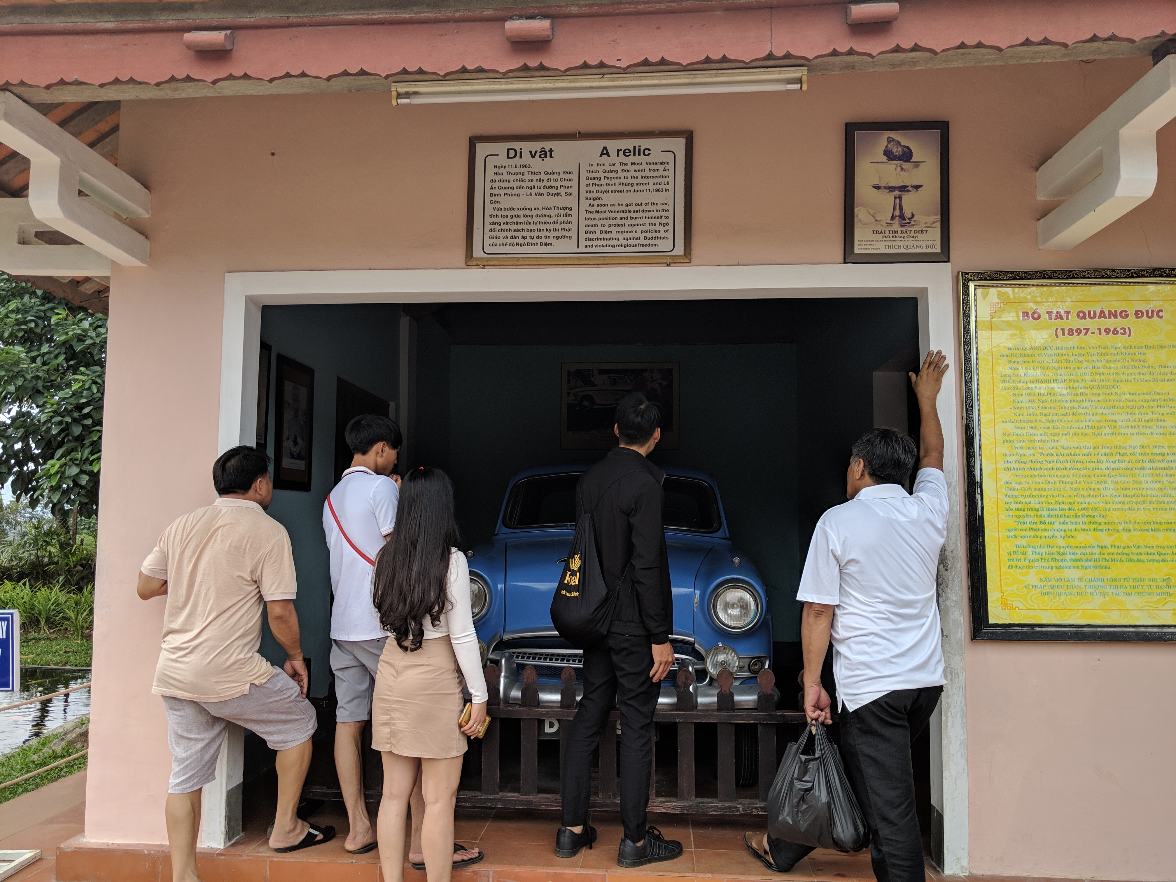 There was a crowd gathering around a blue car roped off to the side, whose modern presence I found to be oddly out of place. Isabel, on the other hand, actually read the placard and excitedly told me what all the fuss was about: This was the car that the Superior monk Thich Quang Duc drove to Saigon in 1963, before committing self-immolation in protest over the South Vietnamese government’s treatment towards Buddhists. “Mark, do you know what self-immolation means?” No. “He set himself on fire.” Oh … Okay … I won’t include a link here, but if you google his name, you’ll come across the world-famous photograph of his sacrificial protest. Ah yes, that guy.