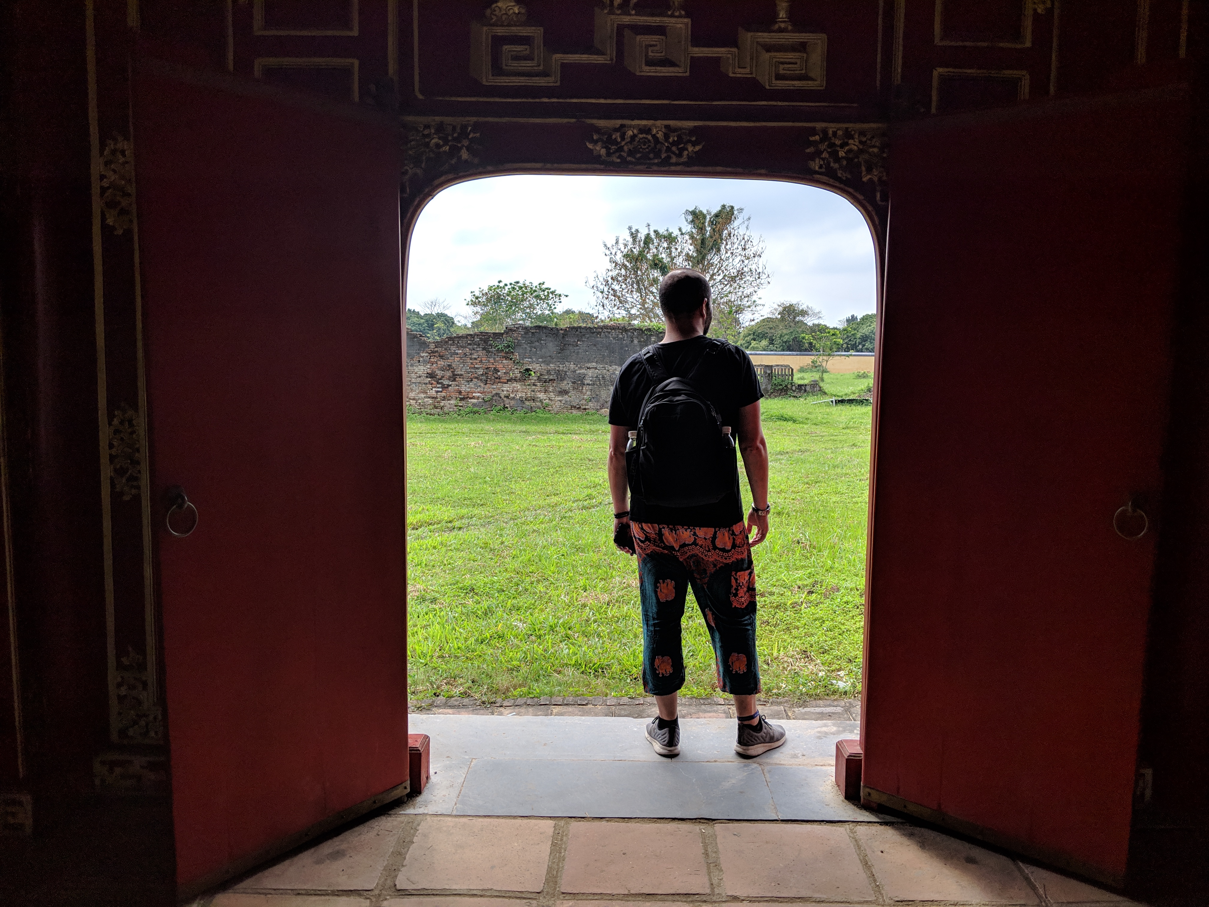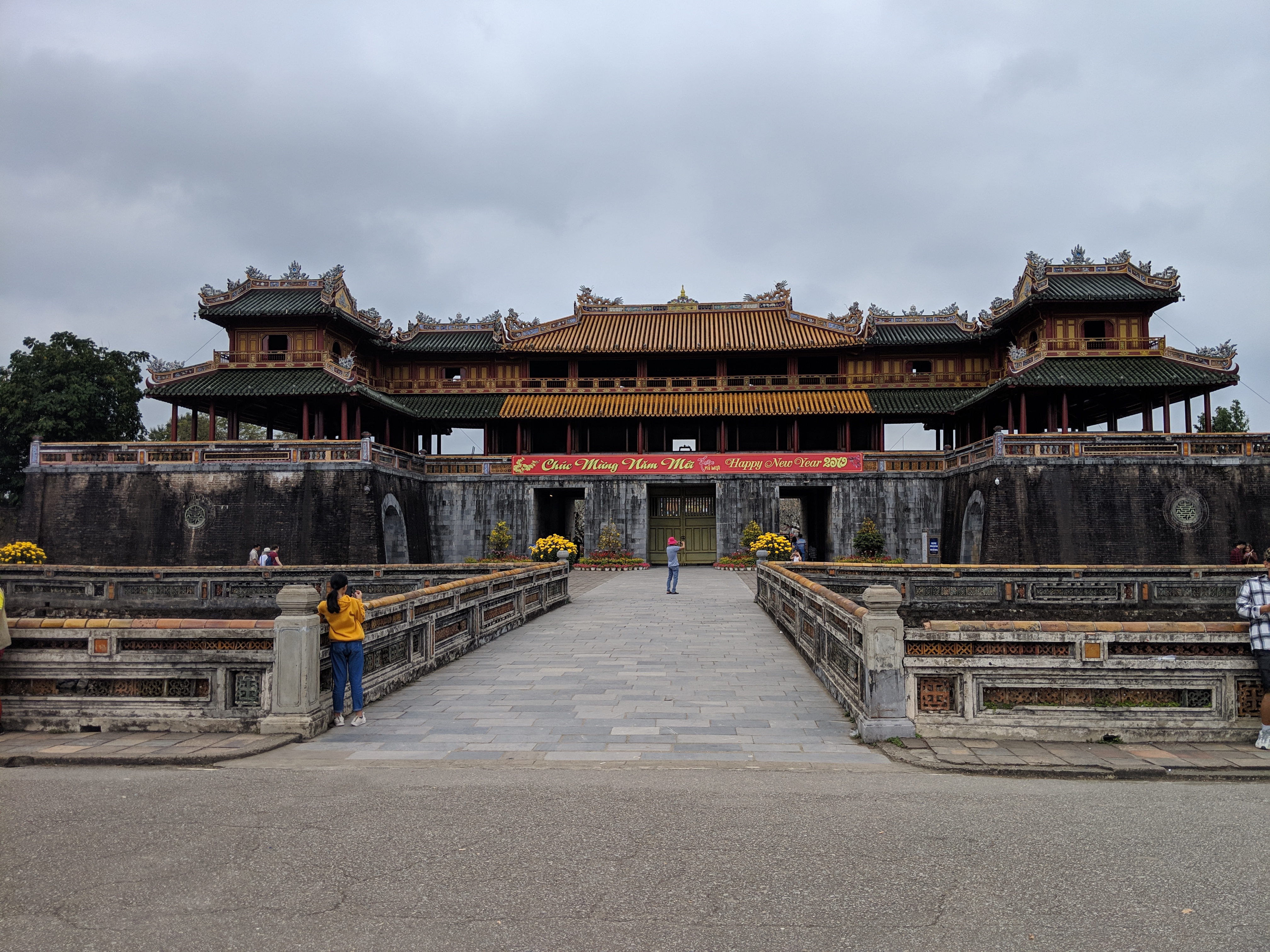 Next on our drive, it was recommended to be sure we went through the Hai Van Pass. Jagged curves on the edge of the cliff as we slowly amble along the mountainside. The entire ride uphill was enveloped in fog. It was funny to think that for most people, this is a once-in-a-lifetime drive. But for us, it was reminiscent of being back in the Bay Area, driving around Mount Tam or through Big Sur. At one point through the fog in front of us, we saw different colors spewing into view, bouncing left and right. The bus in front of us was losing its customers’ luggage! Our driver stopped the car to join other motor-bike riders to collect the luggage and move it safely to the side of the road, while other drivers sped up to flag down the bus, letting them know they were losing their contents. I couldn’t help but feel that back in the States, people would simply shrug to themselves, thinking Oof, that sucks, yet offer no actual help. Also like being back home in San Francisco, all of a sudden we cleared out of the fog and could take in the sunny views of the windy roads ahead and the beaches down below. We decided to skip the beach and the lagoon and instead drive straight through to Hue.