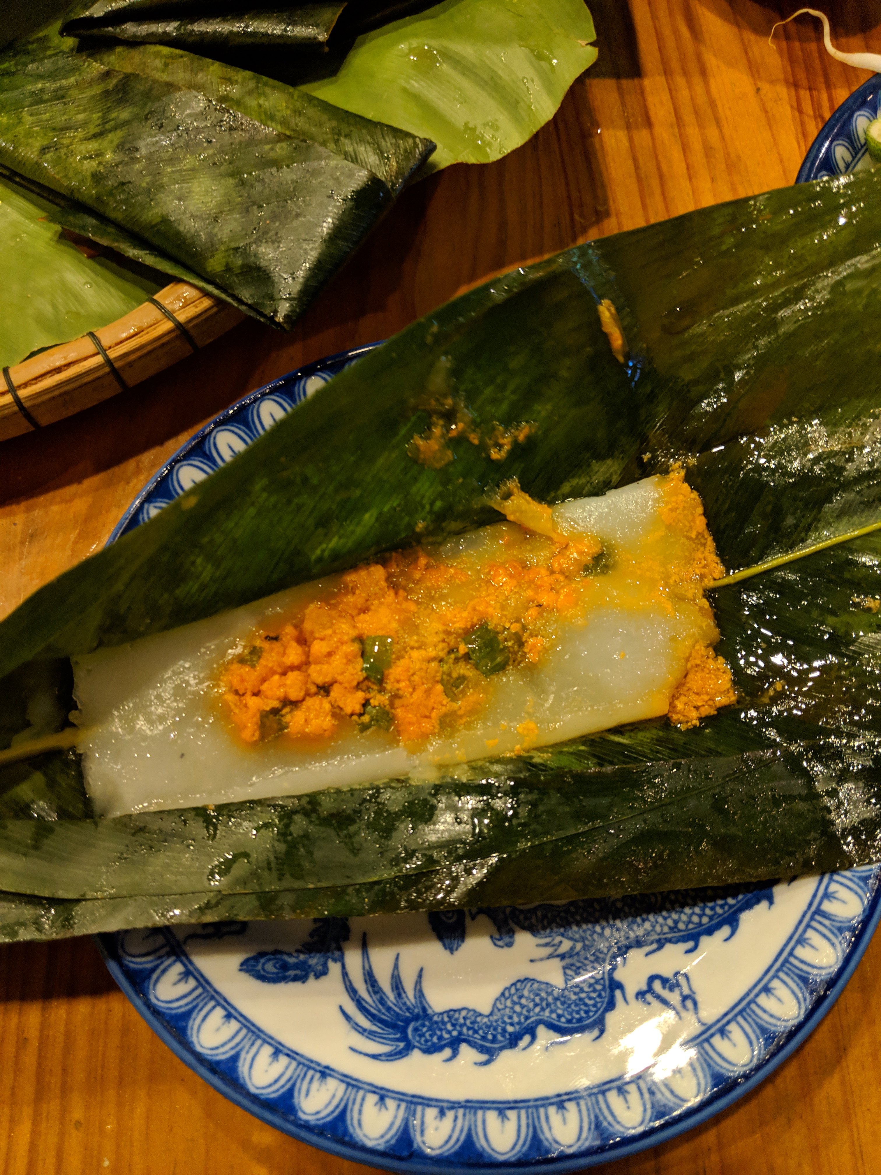 Bánh nậm unwrapped. This was SO good – the texture and taste were almost cheesy.