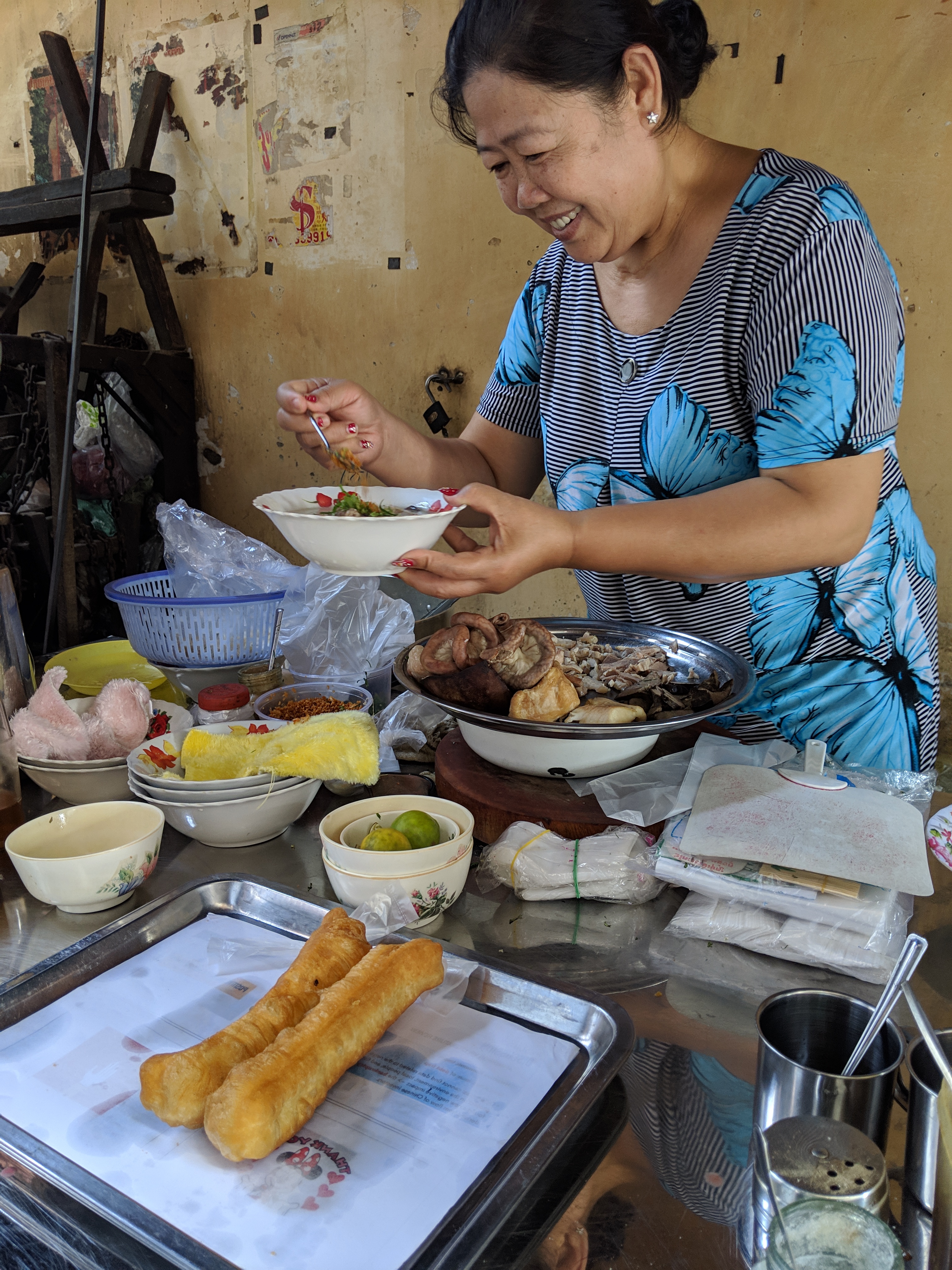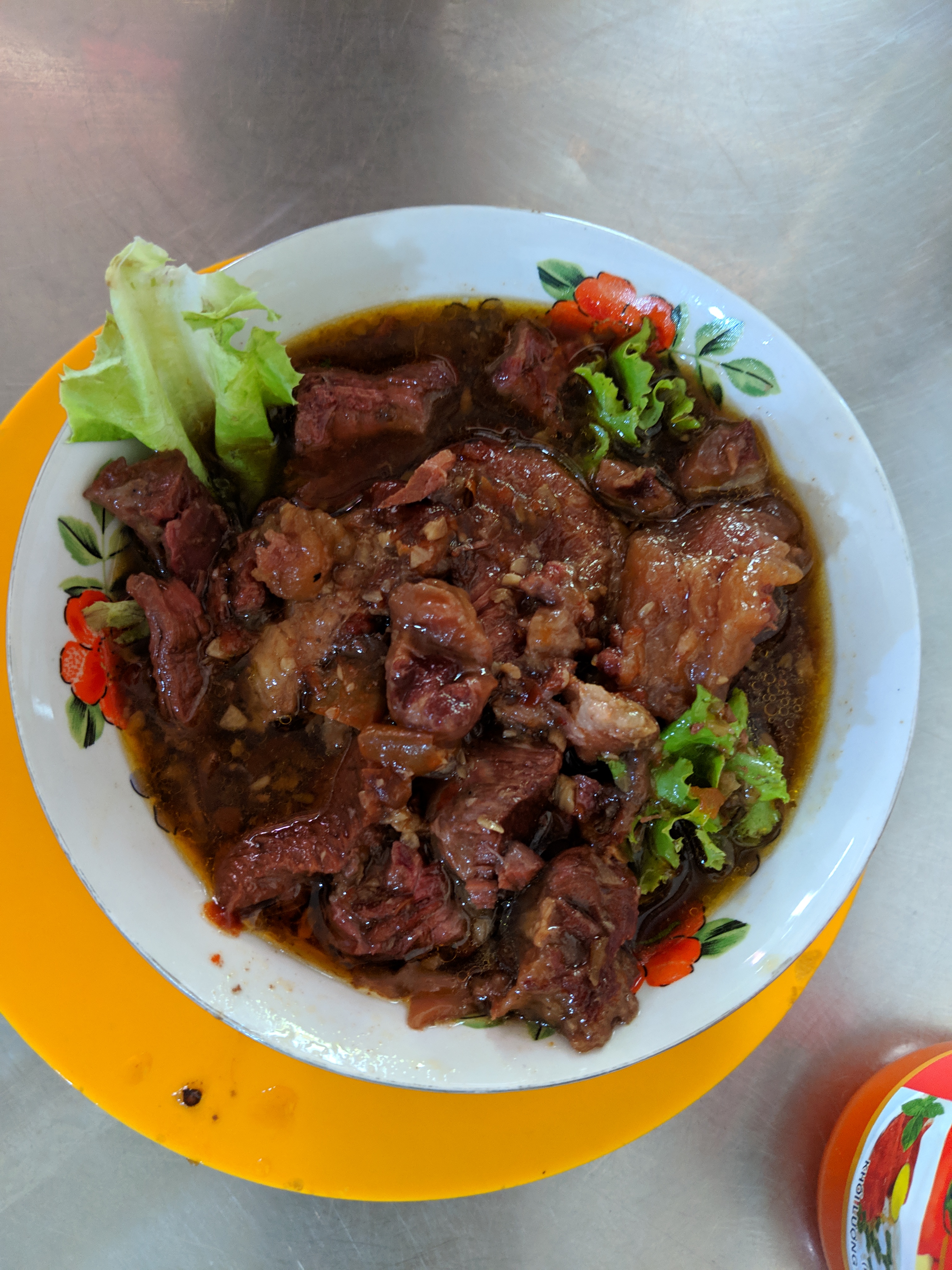 Next, we have Beef Noodle Family. This family has Chinese roots so their specialty dish (bet you can’t guess what it is) is similar to a Chinese beef stir fry. I mention the whole family because the teenage daughters were eating breakfast next to us in their PJs, watching TV. The family lives upstairs, so the restaurant technically doubles as a family room. Finally, we have Stew Beef Ladies. This place was great and it reminded us of Vietnam: big, open restaurant with no menu. You sit, you get served. The stew beef (I’m not typing this wrong, our guide actually kept calling it stew beef) was incredibly tender. The stew was rich, hearty, and very comforting.