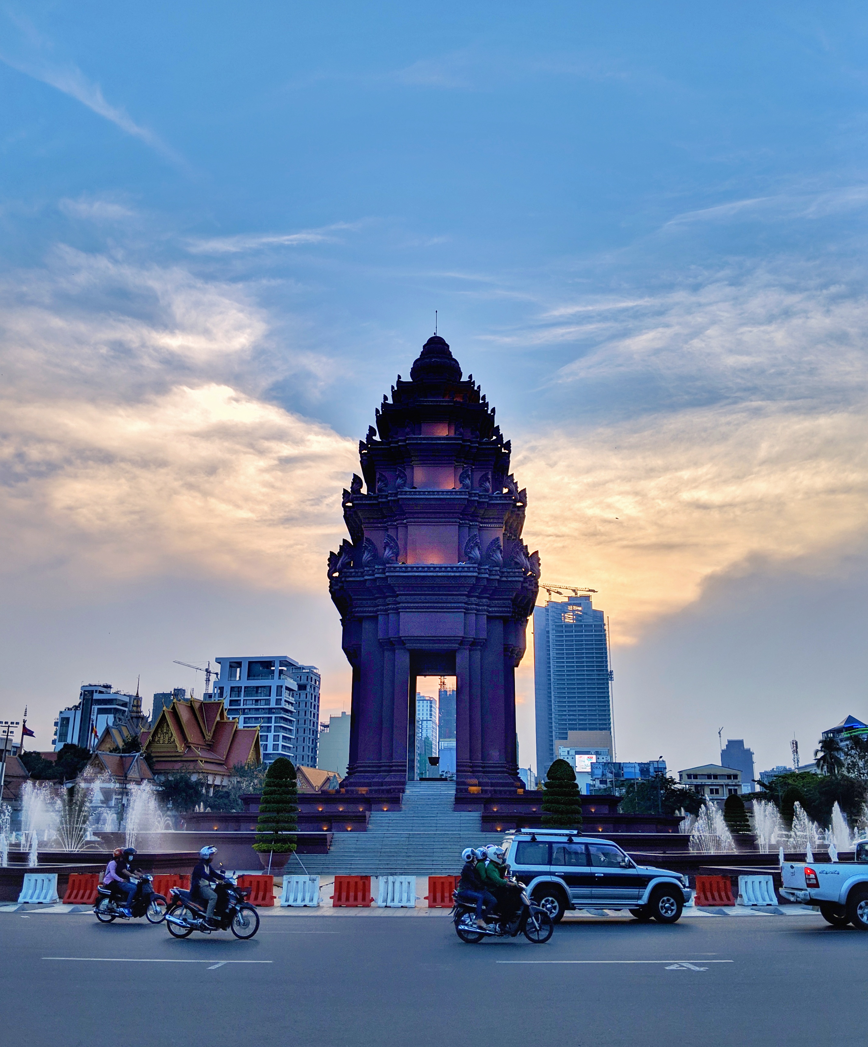 Tuol Sleng was a former secondary school that became a brutal prison under the Khmer Rouge. You can read about it on your own time, but in a nutshell, horrific things happened here. We got an audio tour (shoutout to the Magenheimers!) and quietly explored old cells and interrogation rooms. The museum is tastefully curated, especially given the content, and the audio tour is a must. The whole experience was quite heavy, but in the end, we were glad we took the time to do it. In lieu of prison photos, here is a pretty picture of the Independence Monument: