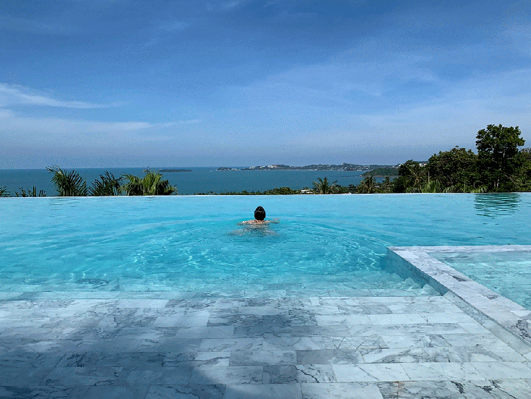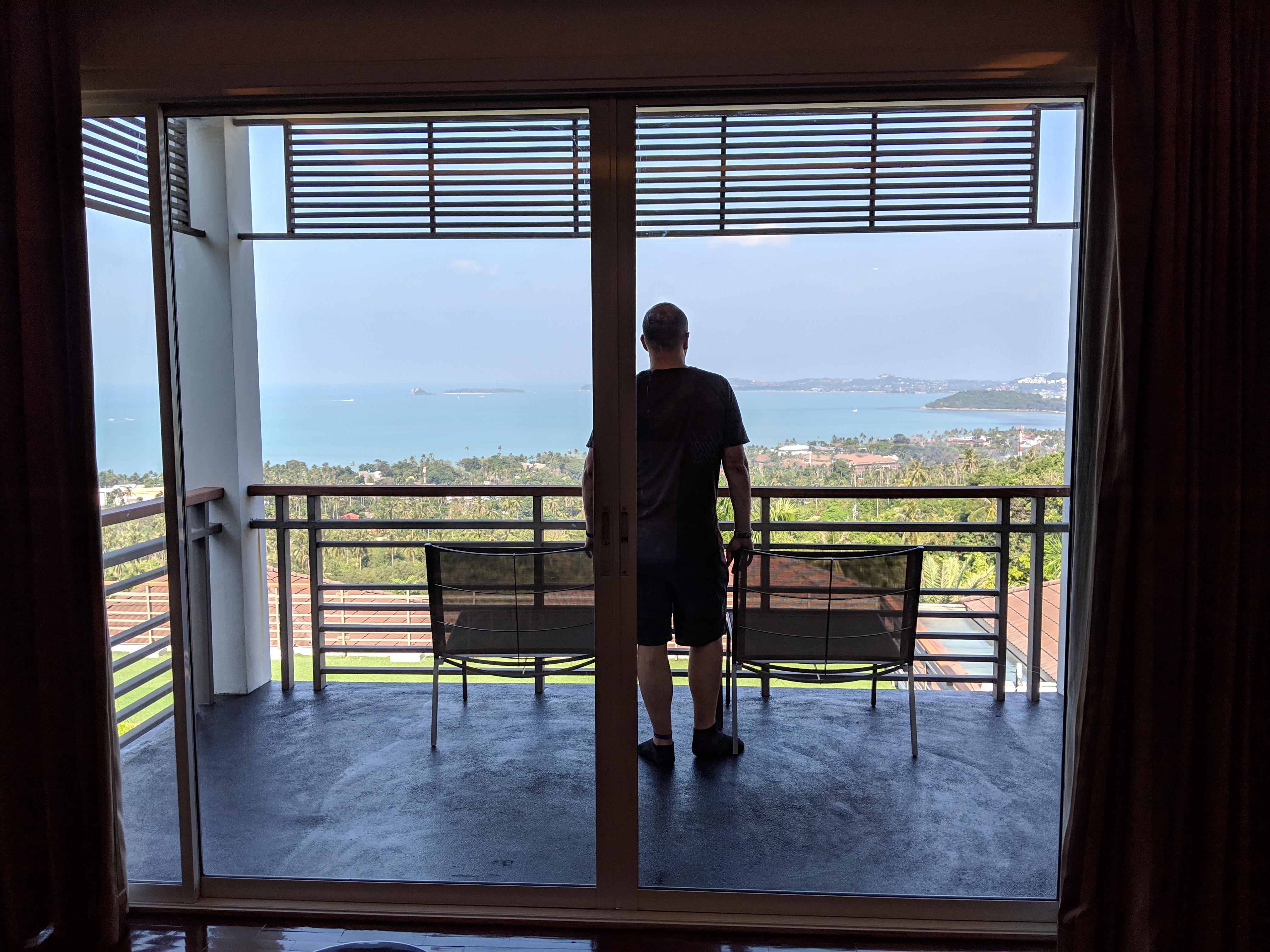 Koh Samui also represented the lone respite from the extreme heat during the second half of our time in Southeast Asia. Of our last six weeks here, it’s the only spot whose temperature forecast isn’t well into the 90s. 70s all day, definitely enough sun to hit you with some color by the pool, but also comfortable enough to sit on the balcony enjoying the view. Our room was comfortable, spacious, and did we mention the view?