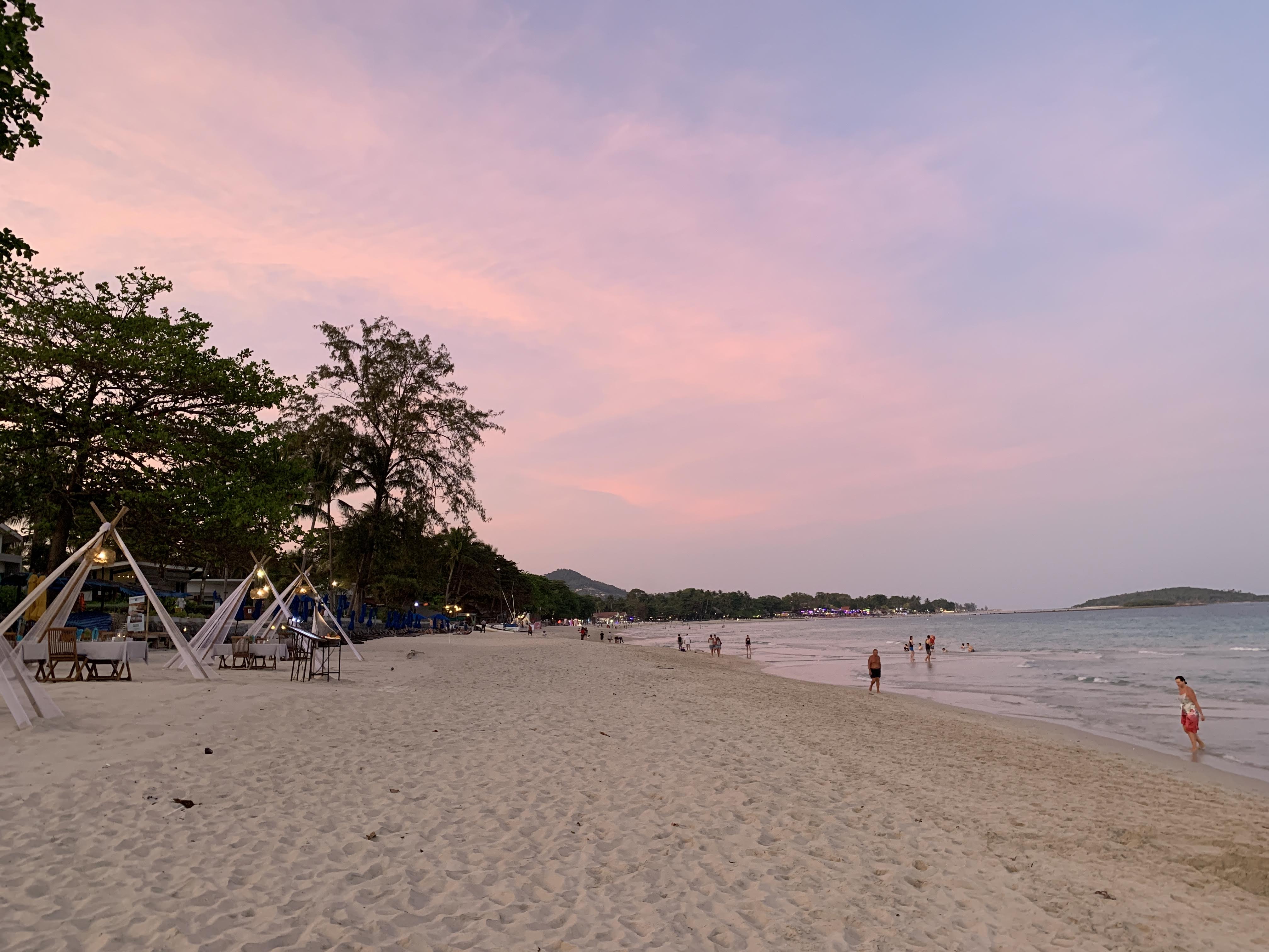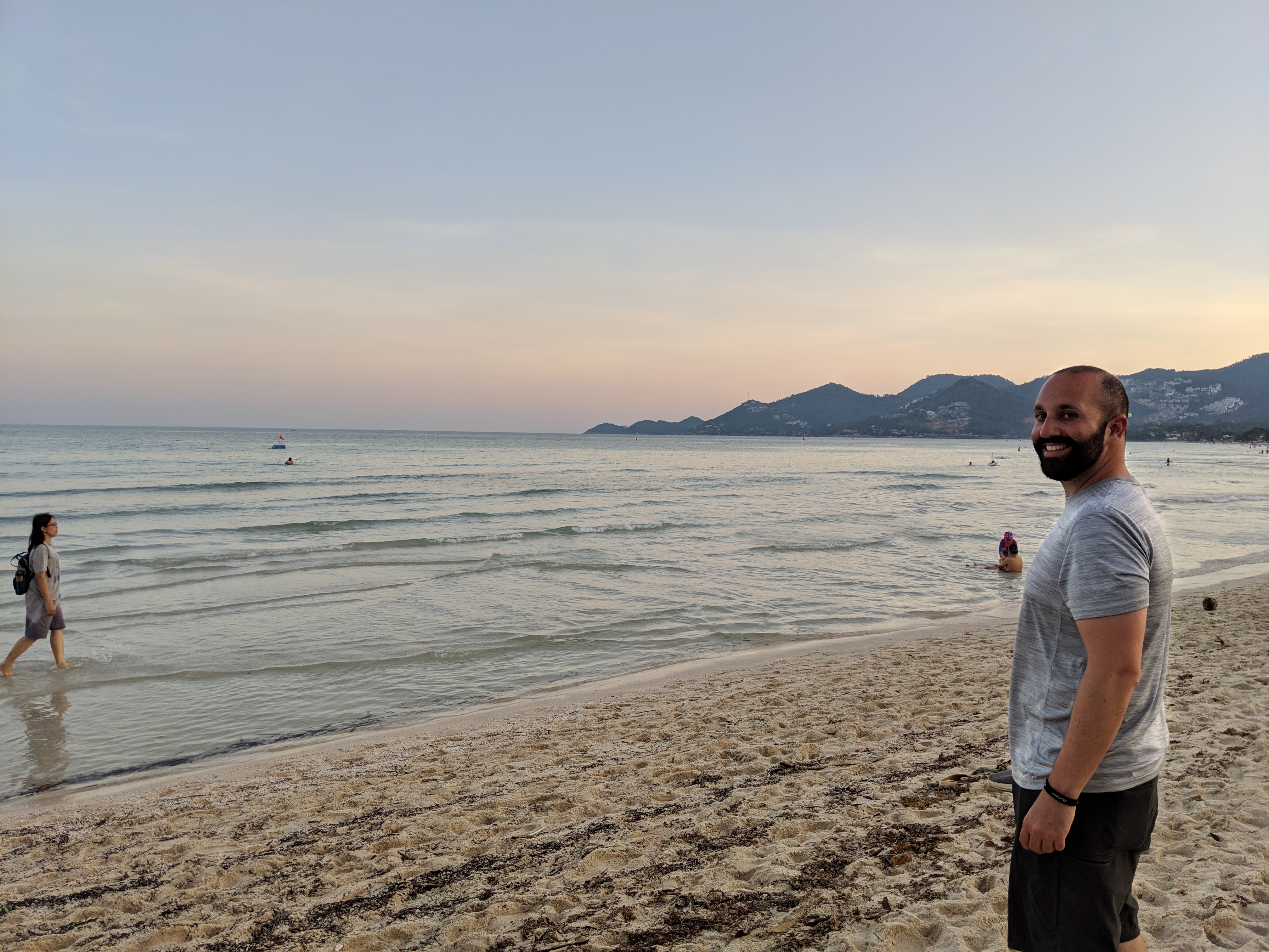 After the movie, we walked barefoot along Chaweng Beach as the sun went down. Beautiful resorts and restaurants lined the beach on one side, and on the other, waves came crashing down on the smooth white sand. A little later in the day than we first planned, but we finally got our beautiful beach trip in.