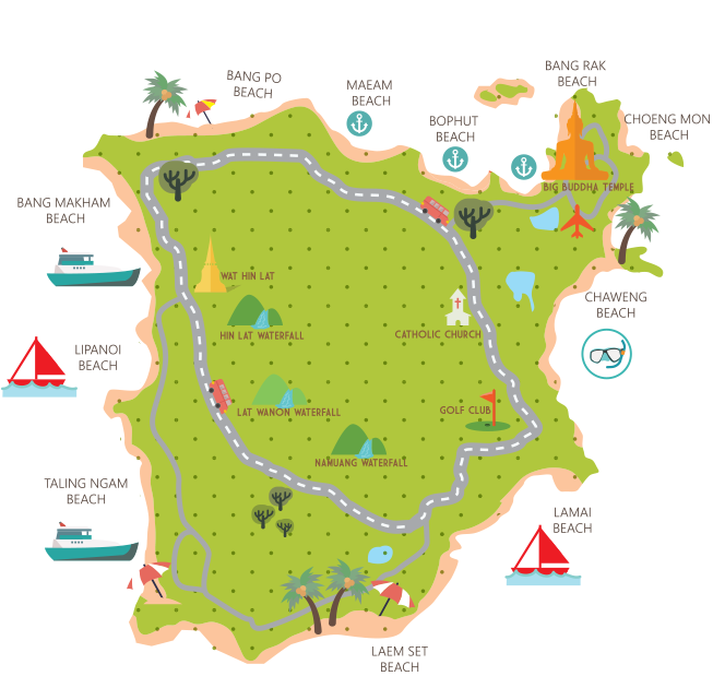 First off, you have to understand the map of Koh Samui. There’s basically one main road that goes around the island like a ring. We stayed near Bophut Beach, to the North, close to the airport (still a 25-minute drive). When we checked in to our hotel, they told us they had shuttles during the day that would drop us off at Fisherman’s Village (right near Bophut) or to Chaweng Beach (on the East side). To get to anywhere else on the island would be a trip, and an expensive one at that. While there are waterfalls and hiking trails hidden in the island’s dense forest center, it just wasn’t in the cards for us.