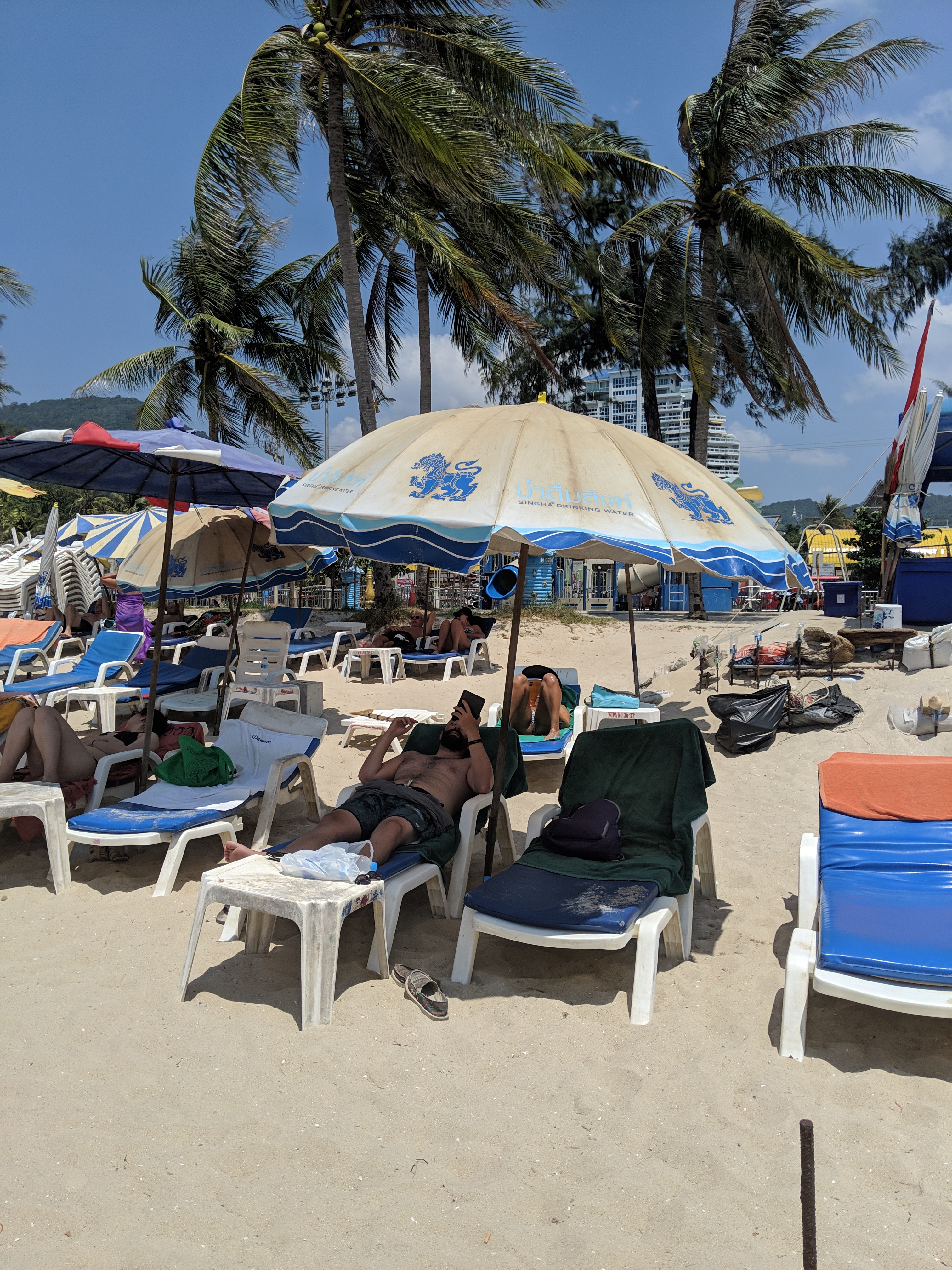 The nights were reserved for GTL (you can google this) youths while the days were reserved for sun-kissed seniors. One morning we made the short walk to Patong Beach to spend the day by the water. We found open lounge chairs pretty easily as they take up about 85% of the beachfront. We paid a nice man about $6 for the chairs, good for the whole day! Our neighbors were all Russian septuagenarians (maybe some sexagenarians), all a real nice mocha color. The water was warm, which though it might sound nice, was actually very weird to wade into on a hot day.