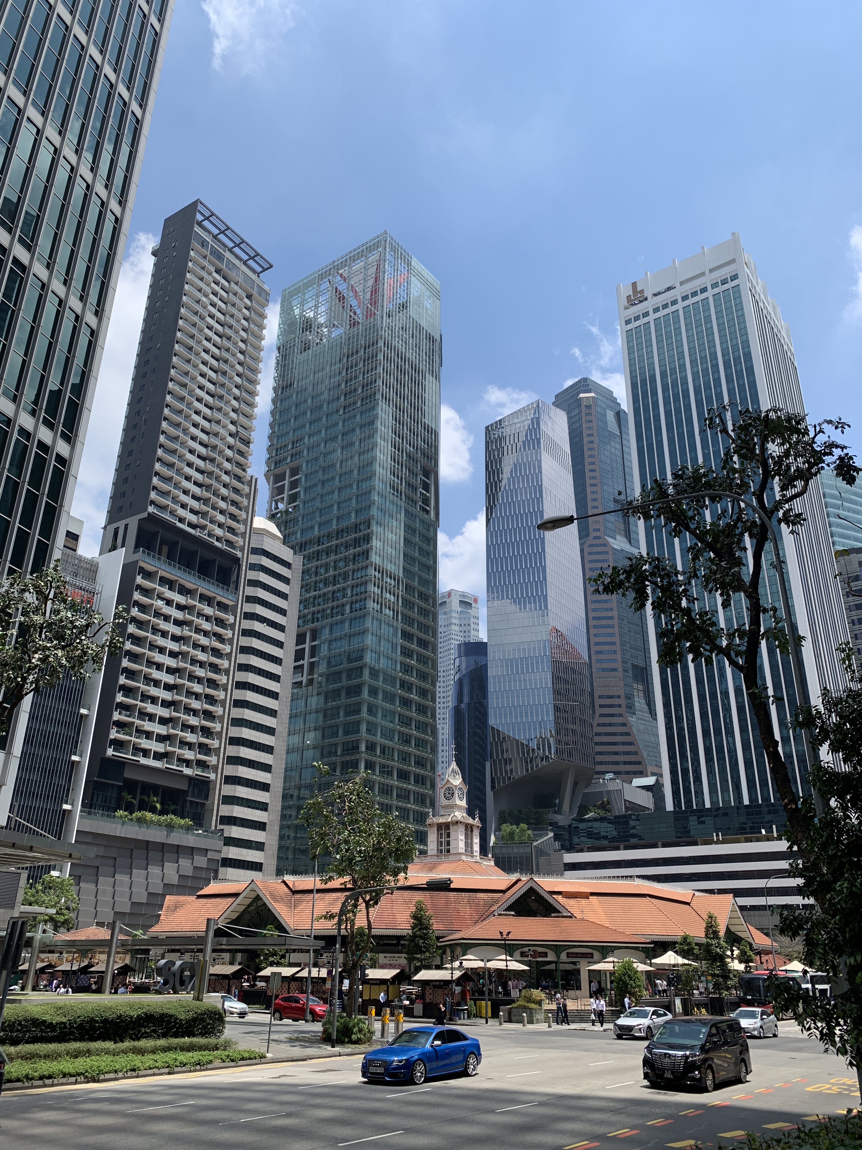 Skyscrapers overlooking the Lau Pa Sat Hawker Centre.