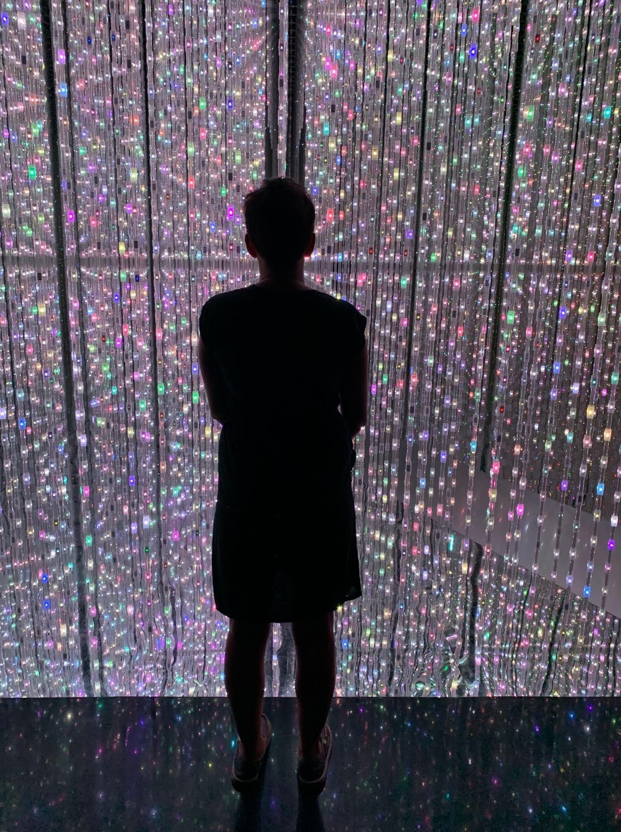 The ArtScience Museum’s star exhibit, Future World: Where Art Meets Science, provided us with way too much fun. Designed by teamLab, a renowned Japanese interdisciplinary art collective, it invites you to embark on a “journey of discovery,” as you interact with nature, town, sanctuary, park and space. Utilizing a bit of sensory distortion at times, this was both an Instagrammer’s paradise and a kid’s favorite play park. We had a ton of fun going through the different exhibits, exclaiming about the work being done here. We had the most fun in the “town” space. You design and color in buildings, vehicles, animals, people and spaceships using crayons on a piece of paper. After scanning your work in this machine, your design enters the digital world on screen and interacts with everyone else’s!