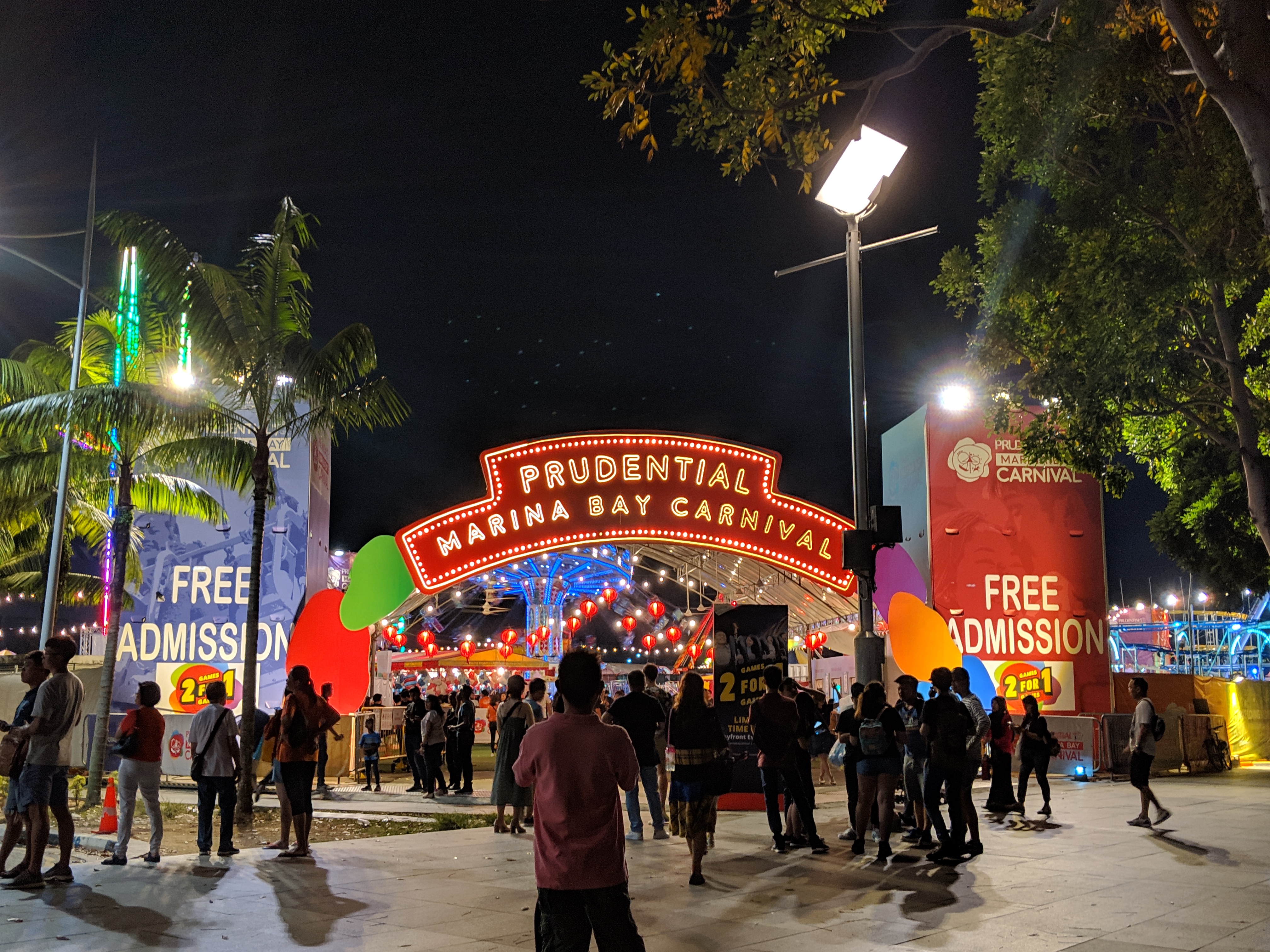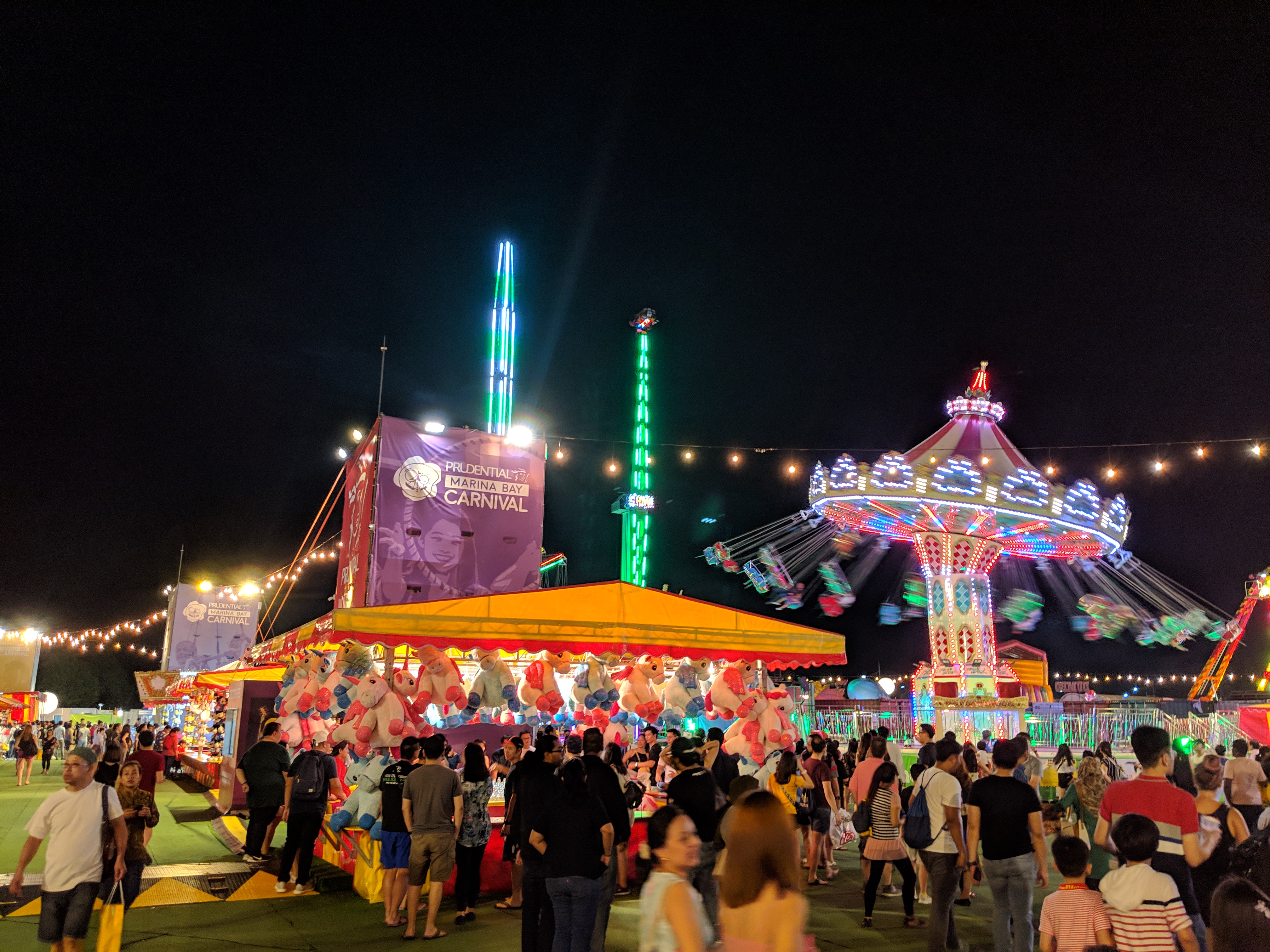 We stopped at a boardwalk café to enjoy a couple libations and views of the bay as day turned to night. Rest is often required, alcohol is sometimes desired. And of course there was a massive water show, complete with lights and an operatic musical accompaniment, that would be the envy of the Bellagio. After that, on our walk to grab dinner at a hawker centre, we passed through a full-on pop-up carnival. We rode the big rollercoaster and admired all the other rides and games from afar. So basically what I’m trying to say is: Singapore is Disney World (Hi, Aunt ilene!).