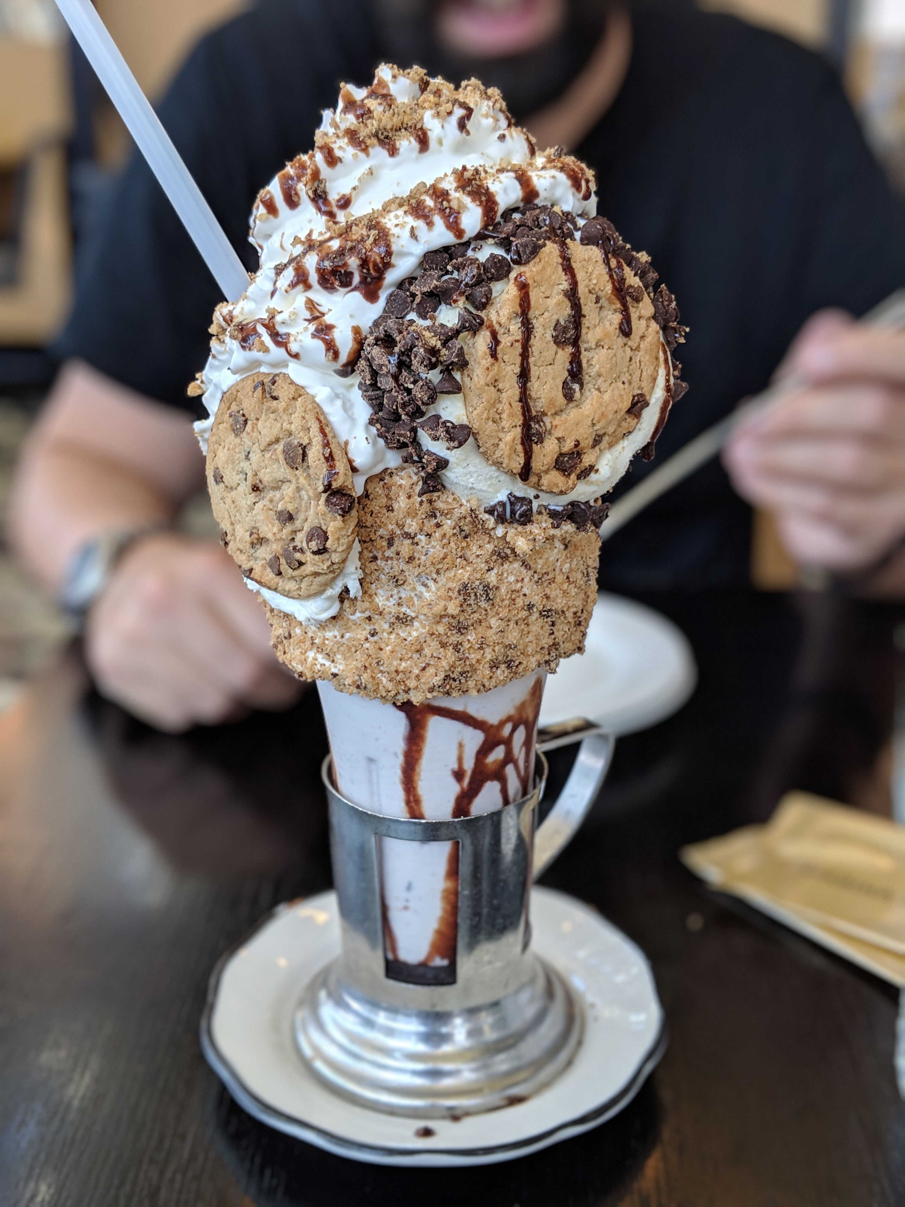 All that tourism and edutainment really worked up an appetite. Just inside the exit of the Marina Bay shopping mall was a massive restaurant boasting three things: craft burgers, draught beers, and “Crazy Shakes.” We had our eyes on the latter and after seeing the size of these monsters, opted to split one between the two of us. Good call. When you order the Cookie Shake, what you get is: a giant vanilla ice cream shake, serve in a glass with a vanilla icing frosted rim that is coated in cookie crumbs, smothered in whipped cream, covered in chocolate syrup, with a giant chipwich cookie ice-cream sandwich stuck on its side, and heaps of chocolate chips strewn about. You may think that one decadent dessert doesn’t deserve its own paragraph in a travel blog about an entire island city-state, but you’d be wrong.