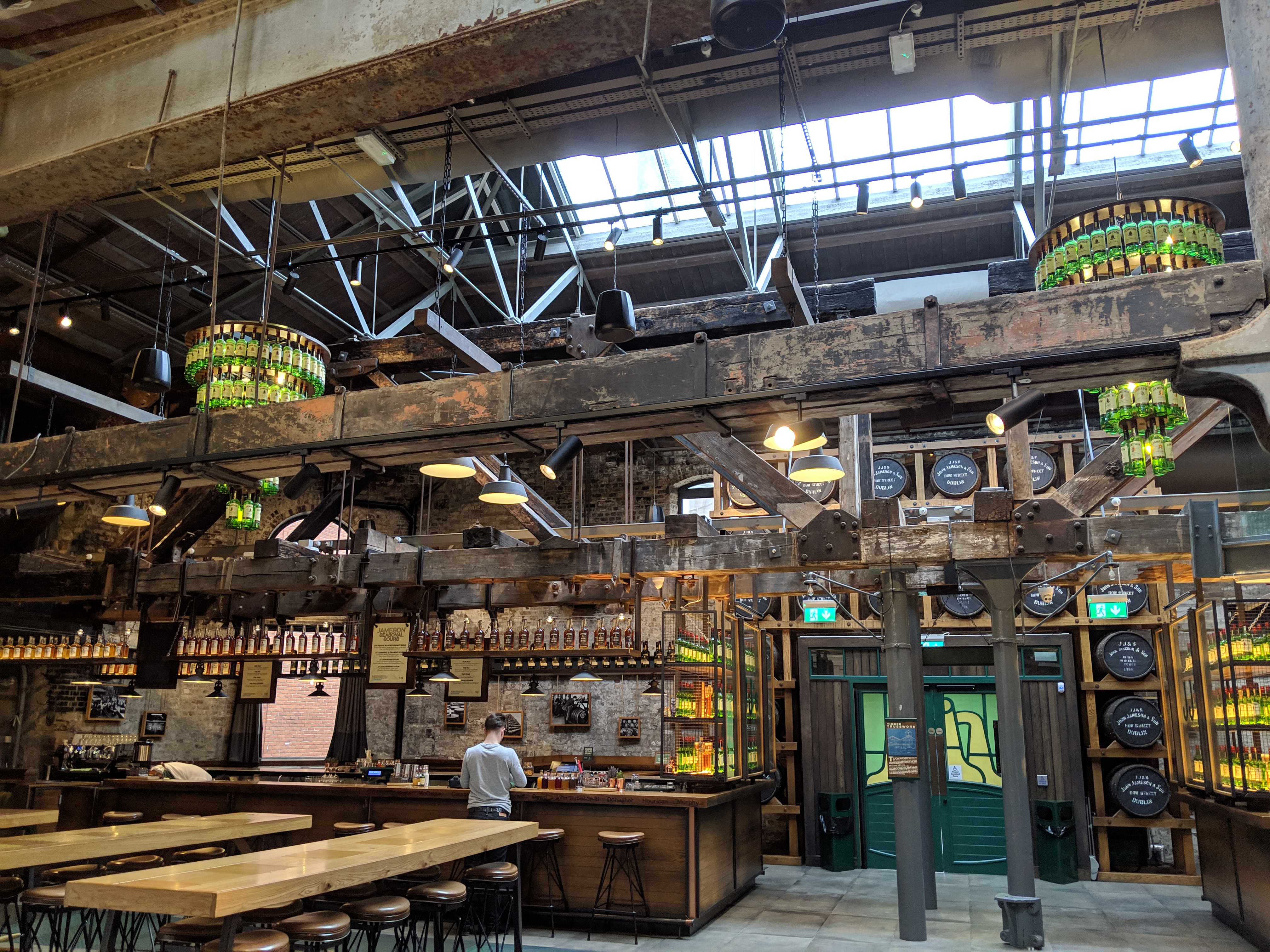 The Jameson Distillery is a great case study in design. How do you attract visitors to a location that is historically significant but doesn’t actually do any of the distilling? You create an award-winning tour, of course! The whole establishment is designed well and cohesively. The beautiful Jameson green is found throughout, the bar itself is modern and clean, and little motifs are pulled from the brand and enlarged on the wall as part of the decoration. Big shoutout to the design team behind the branding and marketing of this distillery – really well done.