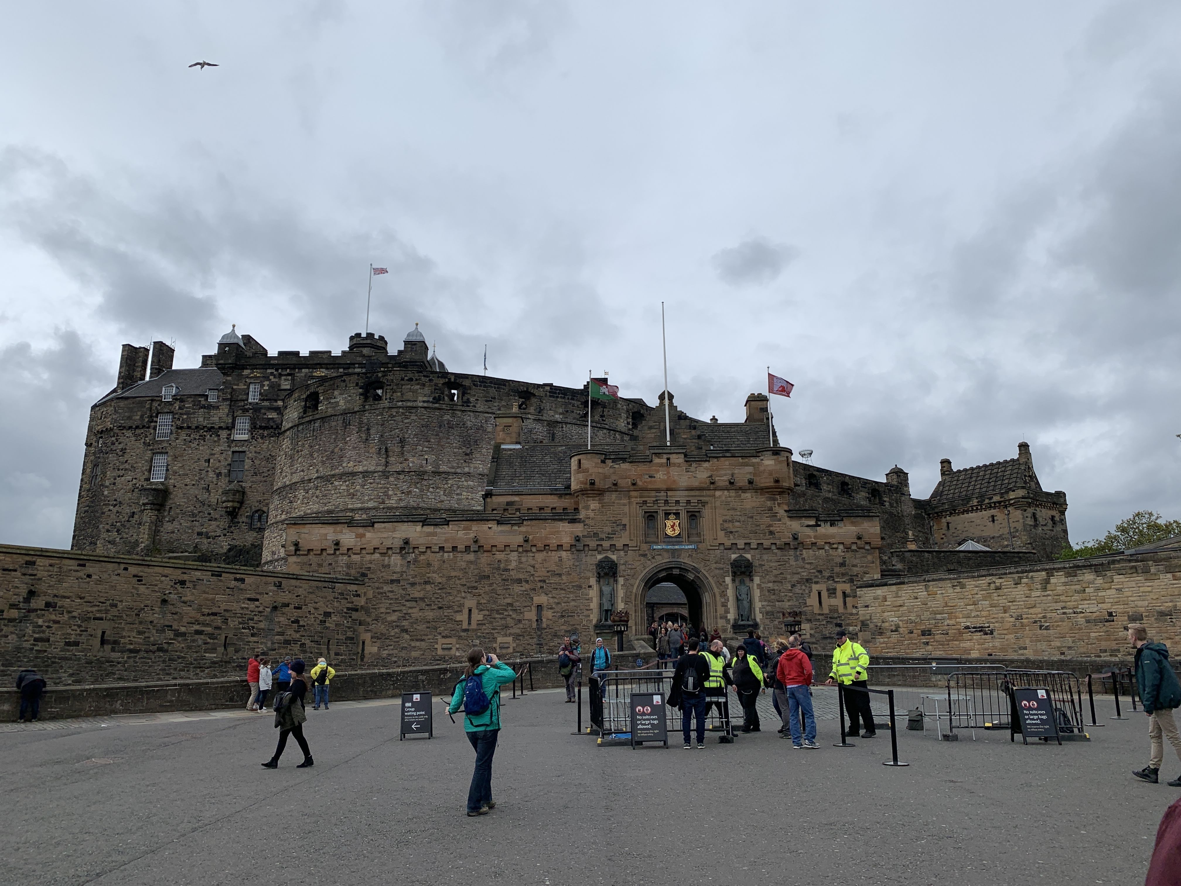 We walked up a wide shopping avenue toward Edinburgh Castle, listening to buskers play the bagpipes while wearing kilts. The castle is one of the most popular tourist sites in all of Scotland and is a major symbol of Scotland. It has a lot of history, which you can read about here, but the coolest thing I saw was the entrance. Two statues stand guard outside and both are super famous Scots – William Wallace and Robert the Bruce!