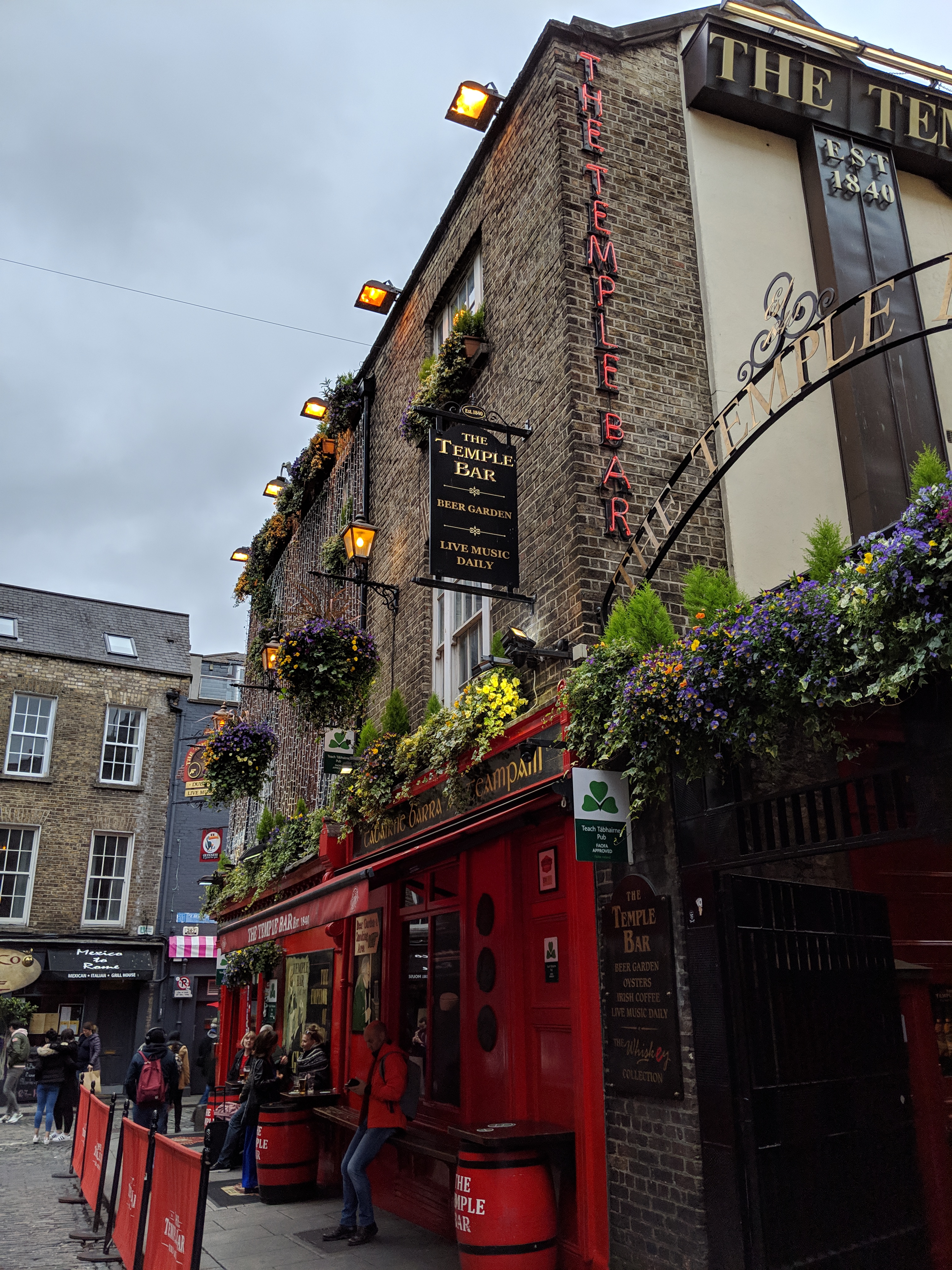 For many tourists, Dublin and drinking in pubs go together like peanut butter and jelly. So if you have either been to or heard anything about Dublin, there’s a good chance you know the name Temple Bar. Temple Bar is both a pub as well as an area (of pubs). Truth be told, the pub itself has zero historical significance. The name comes from a Sir William Temple who bought up all the land surrounding his home just South of the Liffey. The flow of the river deposited sediment in this one area creating a bar. Hence the name, Temple Bar. One crafty pub owner decided to name his establishment The Temple Bar, and thus millions of tourists and euros have poured in ever since. So while it is packed mainly with tourists, it’s also full of good vibes, happy people and wonderful live music. [h/t to our walking tour guide Conor, for debunking the myth of Temple Bar.]