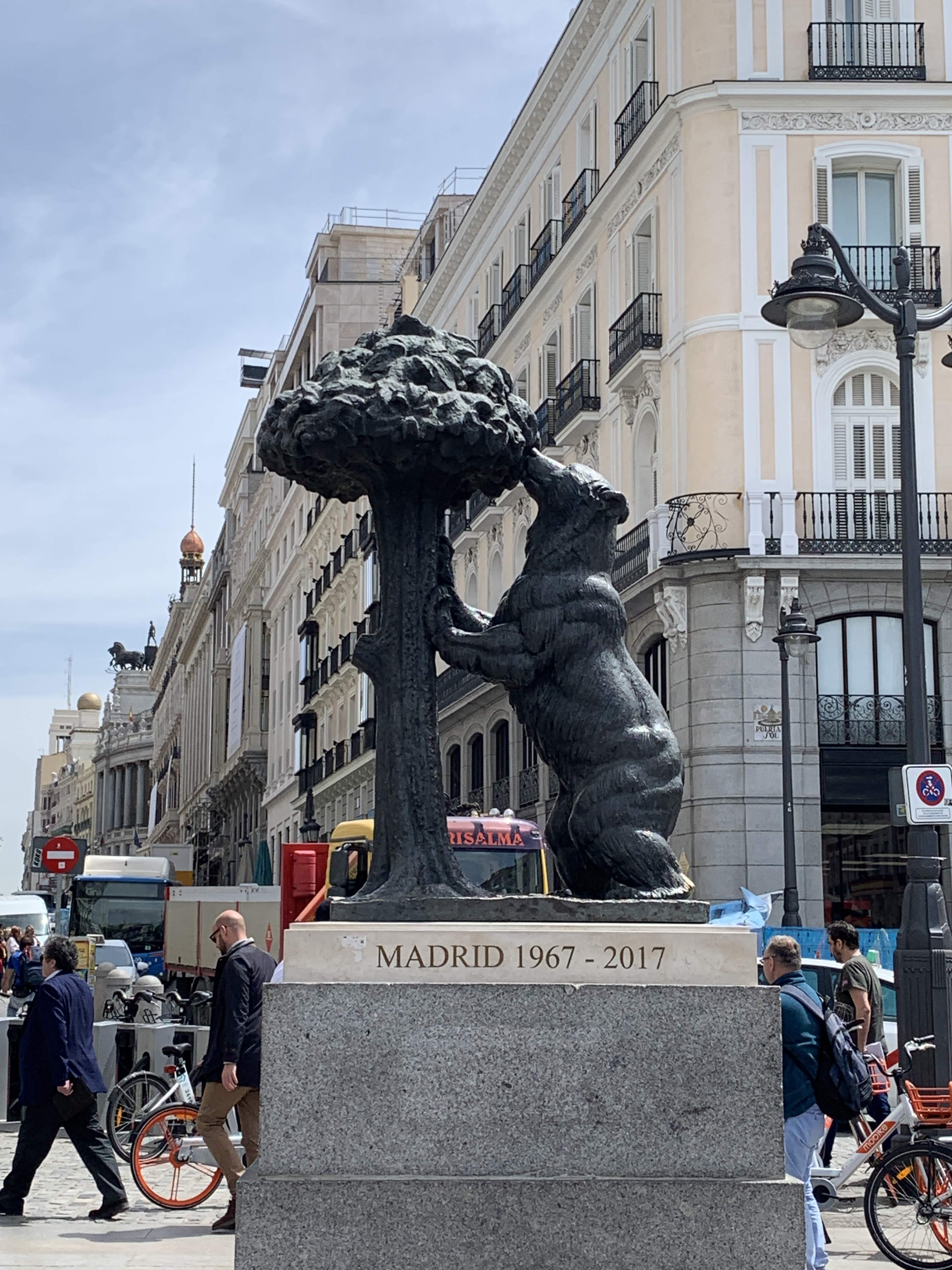 There is also the statue of La Osa y el Madroño, the Bear and the “Strawberry Tree.” Legend has it that long ago the land of Madrid was occupied by bears in the surrounding woods. The fruit on these trees would ferment in the sun, so when the bears came to eat the fruit, they got drunk. One night in their sleepy intoxicated state, the people picked up the bears and drove them from the land, allowing the city of Madrid to grow as the Spanish capital (This logo is found all over the city; on sewer drains, as part of the city council badge, even incorporated in the crest of Atlético Madrid, the city’s other major soccer club).