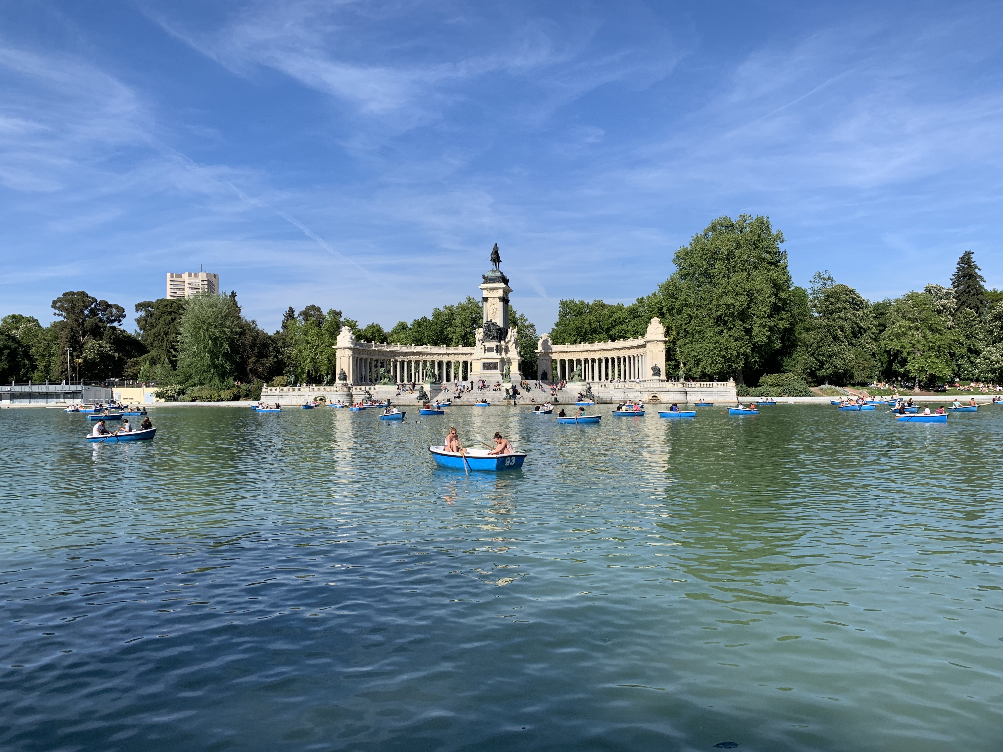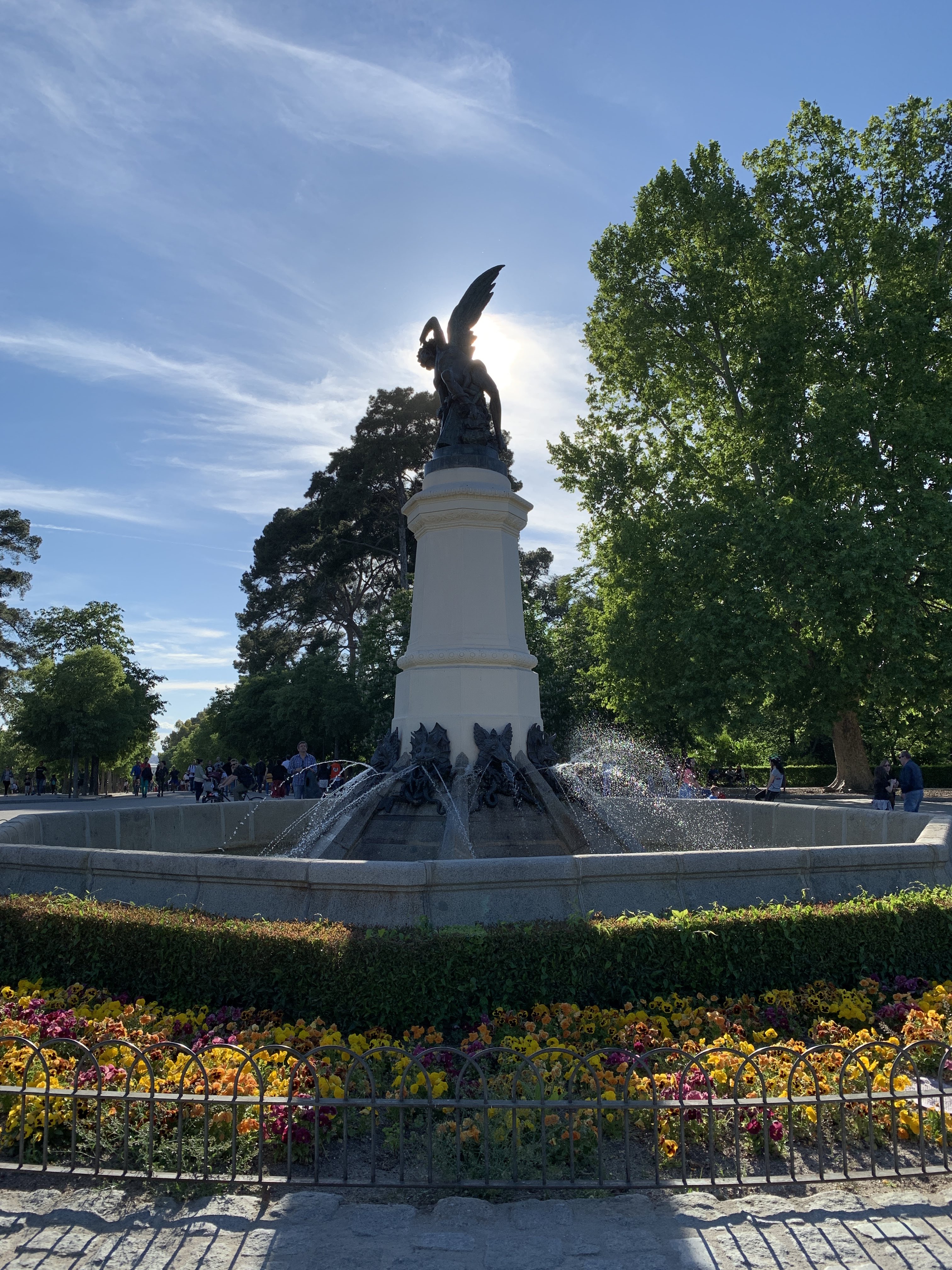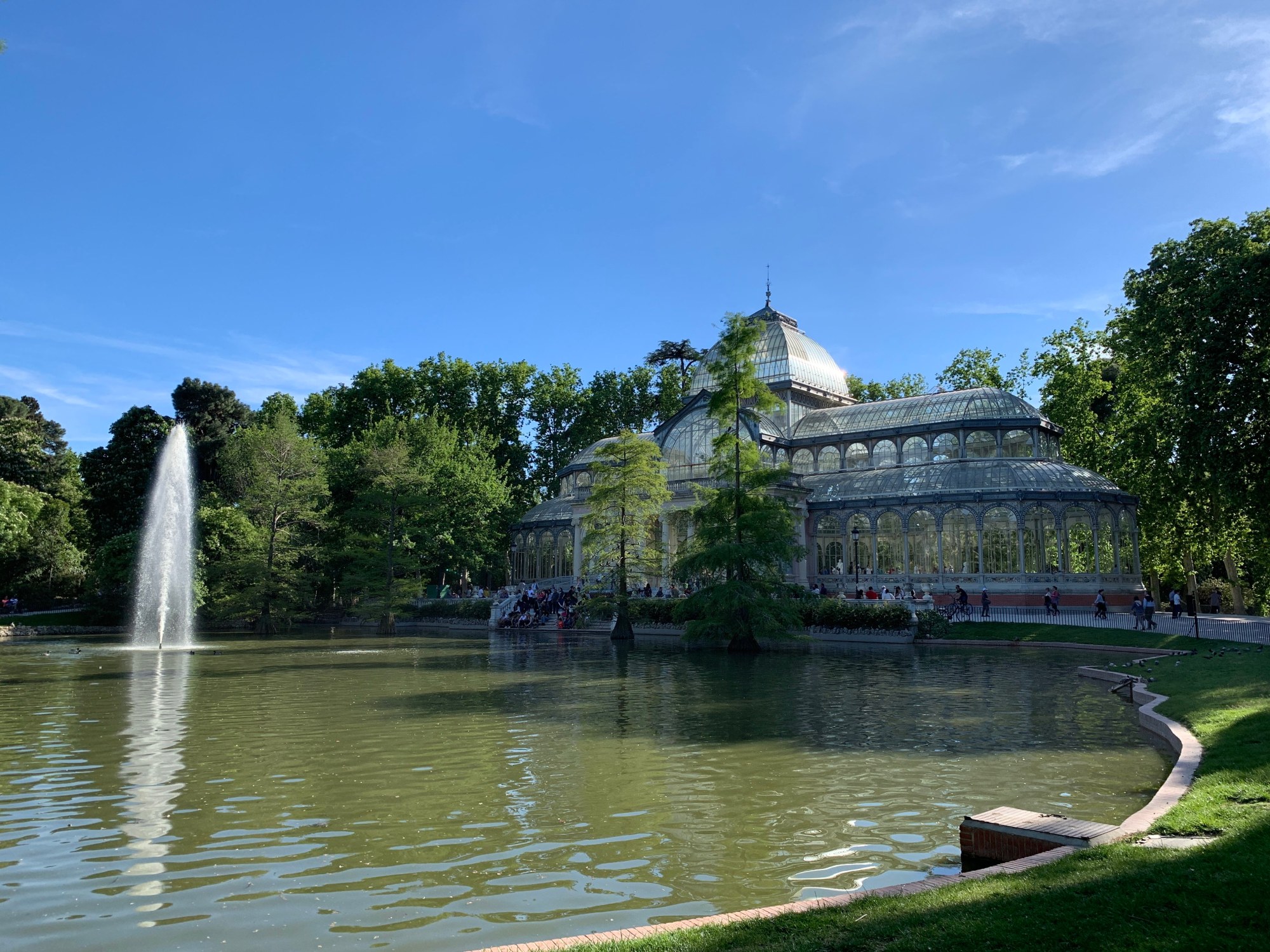 I was told by a friend who had lived in Madrid for a while that on Sundays you’ll find madrileños in the parks; learning how to rollerblade, riding bicycles, working on their tans, sat in drum circles. I had enough time to listen to Arsenal lose a match (typical) while I strolled around El Retiro Park, which is as beautiful as it is massive (and right around the corner from our hotel!). Tree-lined paths, gardens and fountains, sculptures and monuments are everywhere. There is a massive pond flooded with row boats, in front of an impressive and grand monument to a former king. The Palacio de Cristal, a glass-encased conservatory popped up out of nowhere, housing a sculpture garden. One of the highlights in the park is the Fuente del Ángel Caído, the Fountain of the Fallen Angel, which has the supposed reputation of being the only prominent European sculpture dedicated to the devil. It is proven to stand exactly 666 meters above sea level. Before becoming a public park in the 1860s, this was home to the monarchy, which explains its elegance.