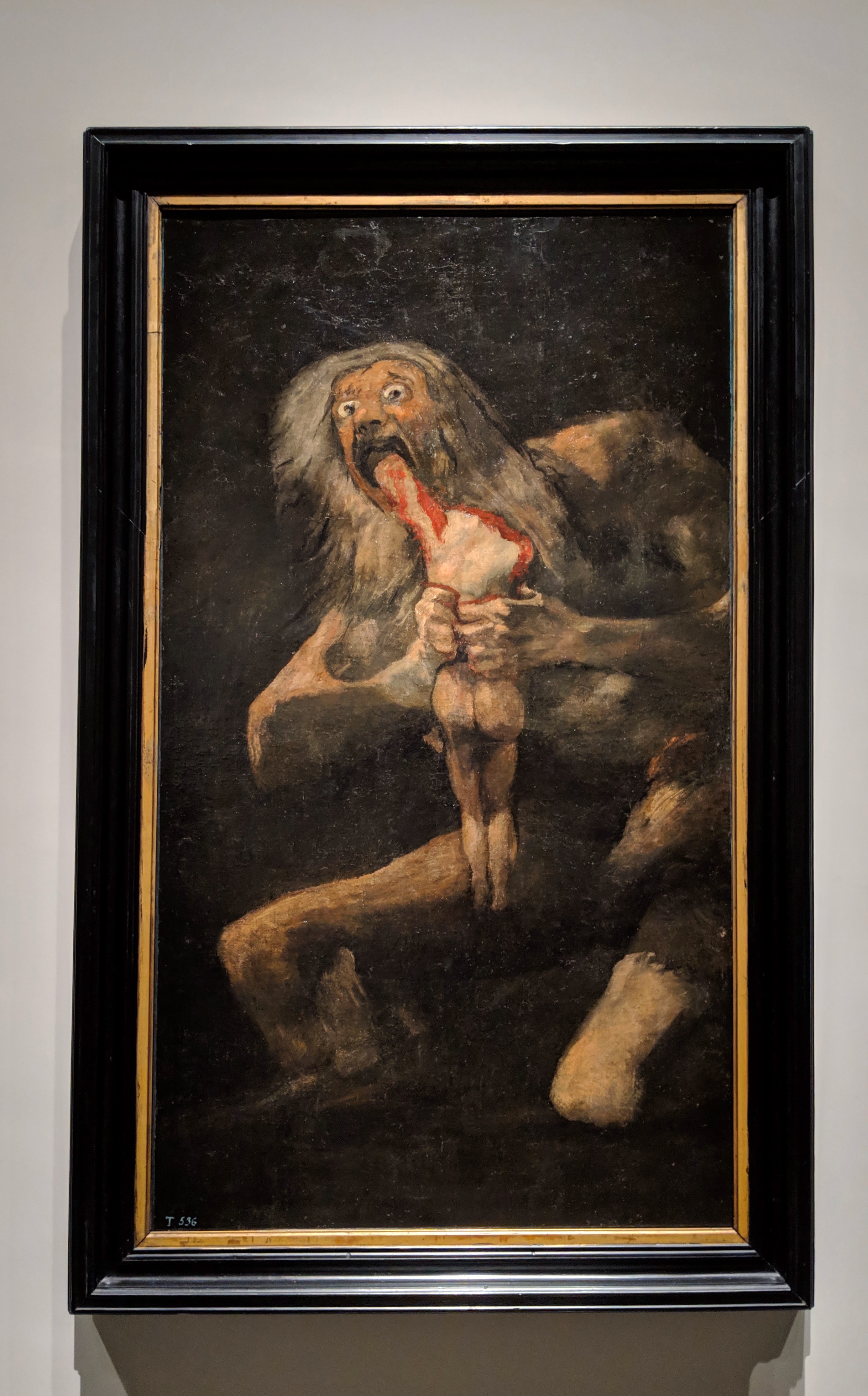 European cities for the most part implement this great concept of “accessibility” to the visiting public. Unlike the U.S., where the average art museum tickets starts at the low bid of $25 or they grant a free day but once a month, European museums offer daily free admission. Both the Prado and the Reina Sofía offer free admission at specific times all week. So at 6pm, we lined up with a small crowd to see the marvels of the Prado. Surprisingly, the line moved fairly quickly and once we got inside, it wasn’t that crowded. It could also be because we went to a less popular exhibit in the Prado – Franciso de Goya’s Black Paintings. This is one of my favorite collections (I’m a big Goya fan) and one of the many reasons I love art so much. A little context: