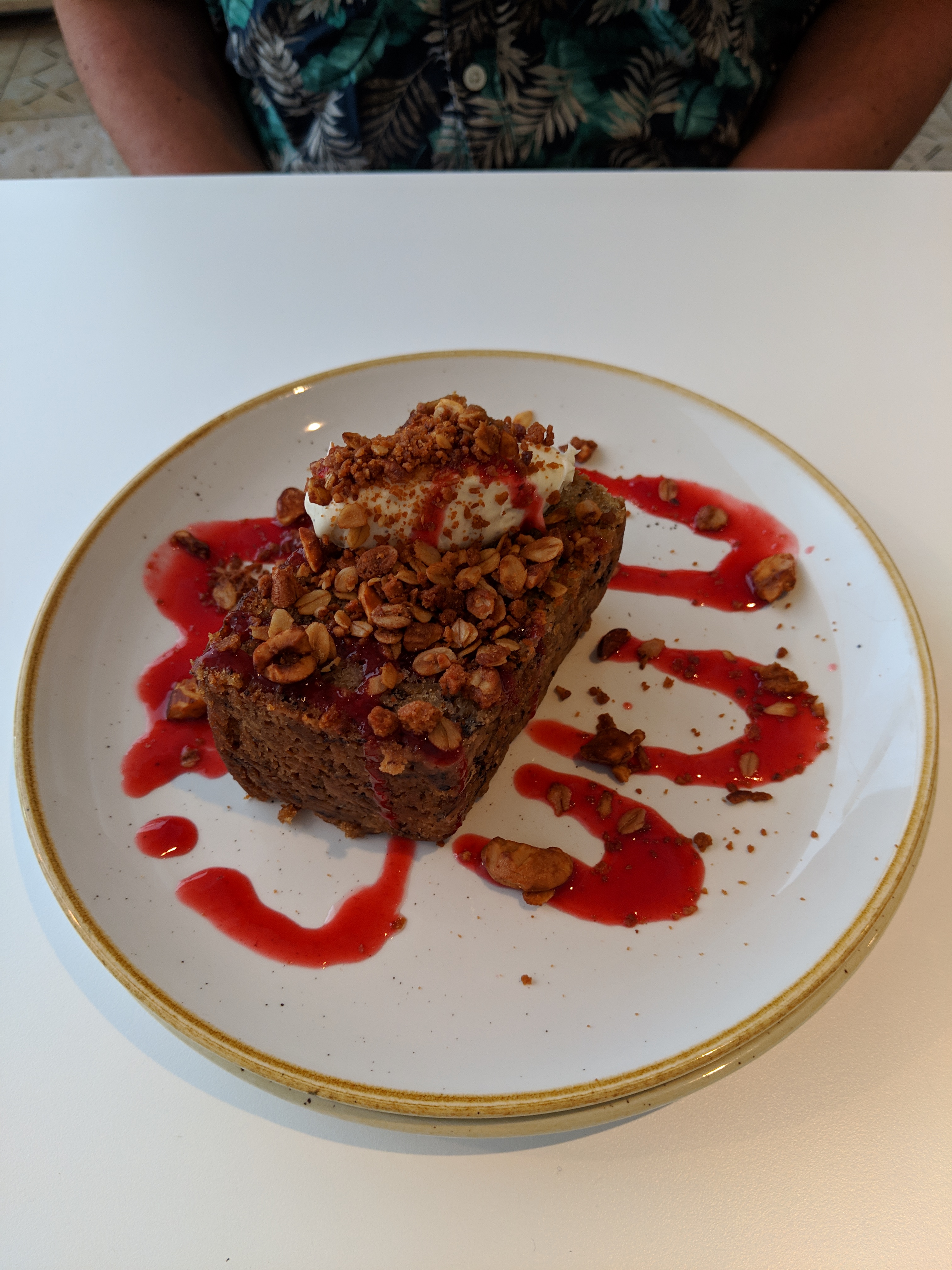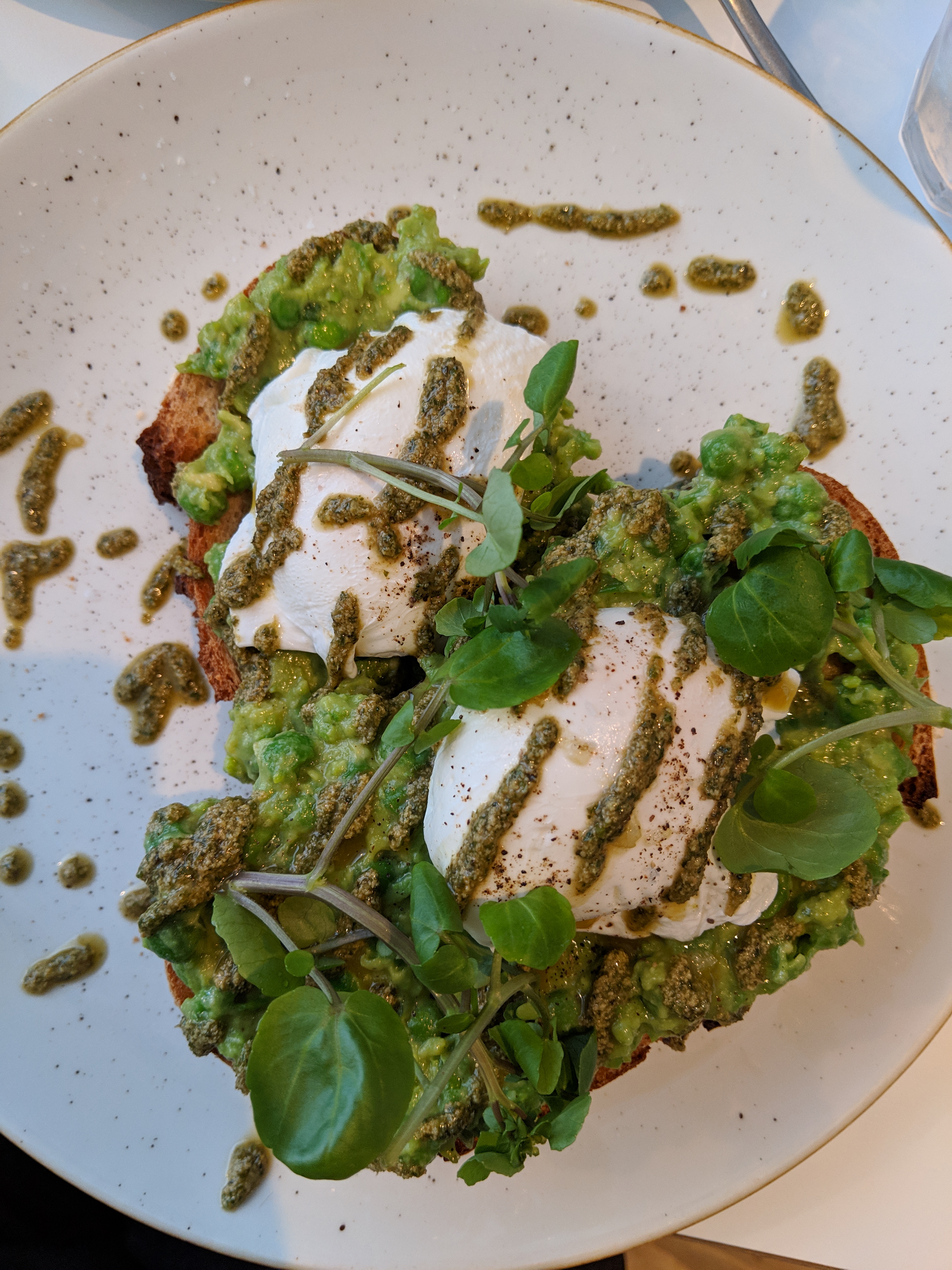 As always, we ate well in Barcelona. Although it’s more expensive than Madrid, we worked hard not to break the bank. Since we were waking up later in the day, we went for brunch down the street at a chic place called Little Fern. This place was super hip, modern, and pulled its aesthetic straight from “New Zealand’s thriving cafe culture”. Move over LA, Barcelona is way trendier than you! I was finally able to get a cup of hot coffee (dream #1) and we started with a magnificent banana bread that is making me drool just thinking of it. Mark opted for a healthy smoothie granola bowl and I chose a pea and avocado smash with cashew mint pesto and poached eggs (dream #2).