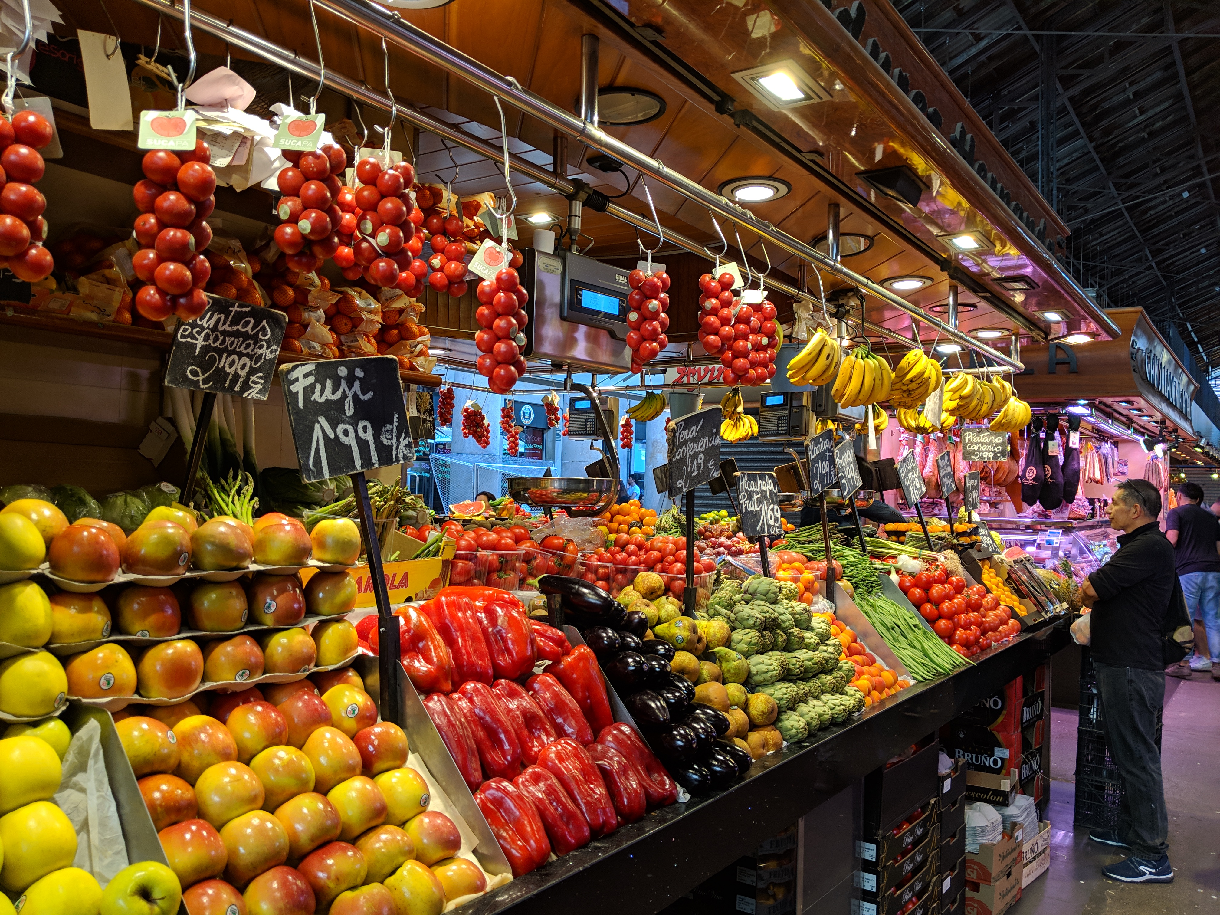 Off of La Rambla is Mercado de la Boqueria, a large market full of delicious, delicious food.