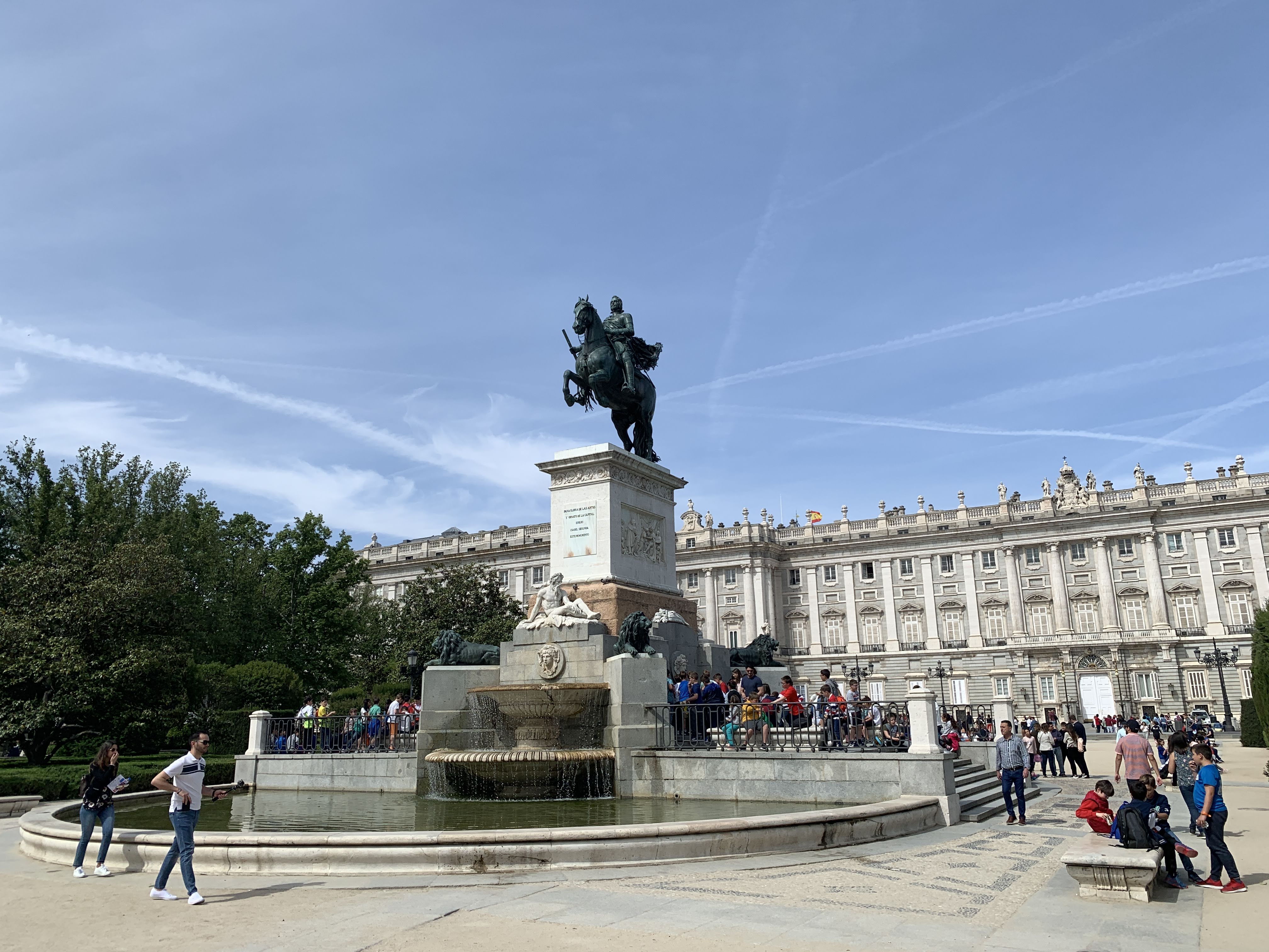 In front of the Palace is the statue of King Felipe IV on horseback (Spain had a long line of Carlos‘ and Felipe‘s on the throne). All across Europe are statues of historical figures riding horses. There is, for the most part, a significance behind the posture of the horse in these statues: