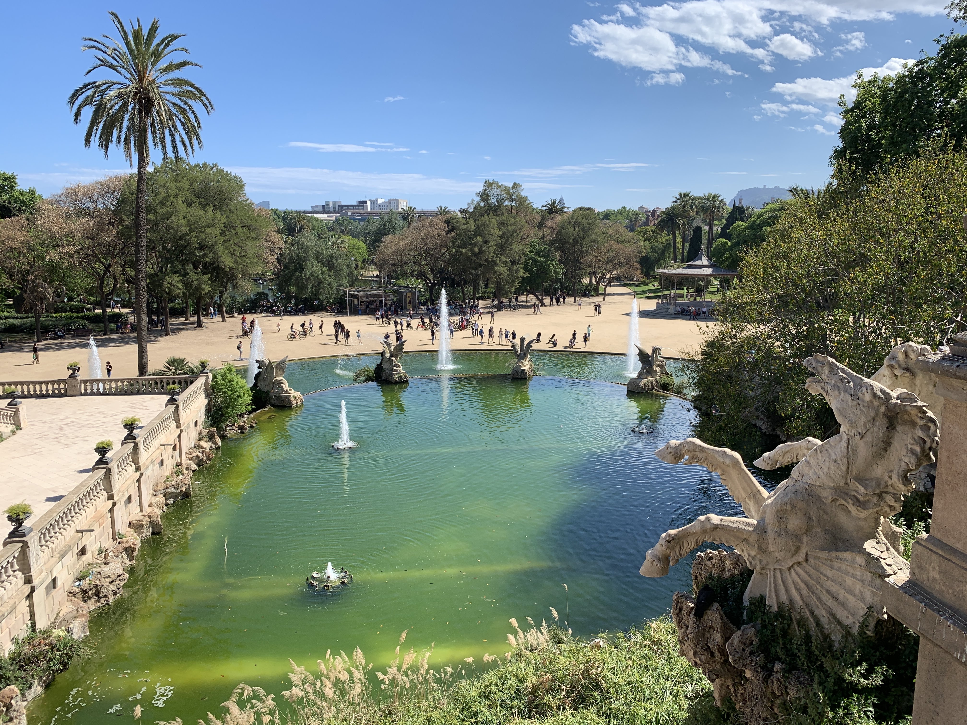 We also spent some time in Parc de la Ciutadella (Citadel Park), a twenty-minute walk from home, next to Port Vell (and all those insanely large yachts). We sat on a bench and read our kindles (I started Paulo Coelho’s Hippie, and Isabel read Flights by Olga Tokarczuk). There were hippie chic-dressed groups sitting in circles on blankets, guys balancing on slack lines, and women riding their bikes along the main path. We got up from our reading and walked to see the centerpiece of the park, an impressive and beautiful fountain with a small lake in front of it. Built in the mid-19th century, for decades this park was the city’s only green space.
