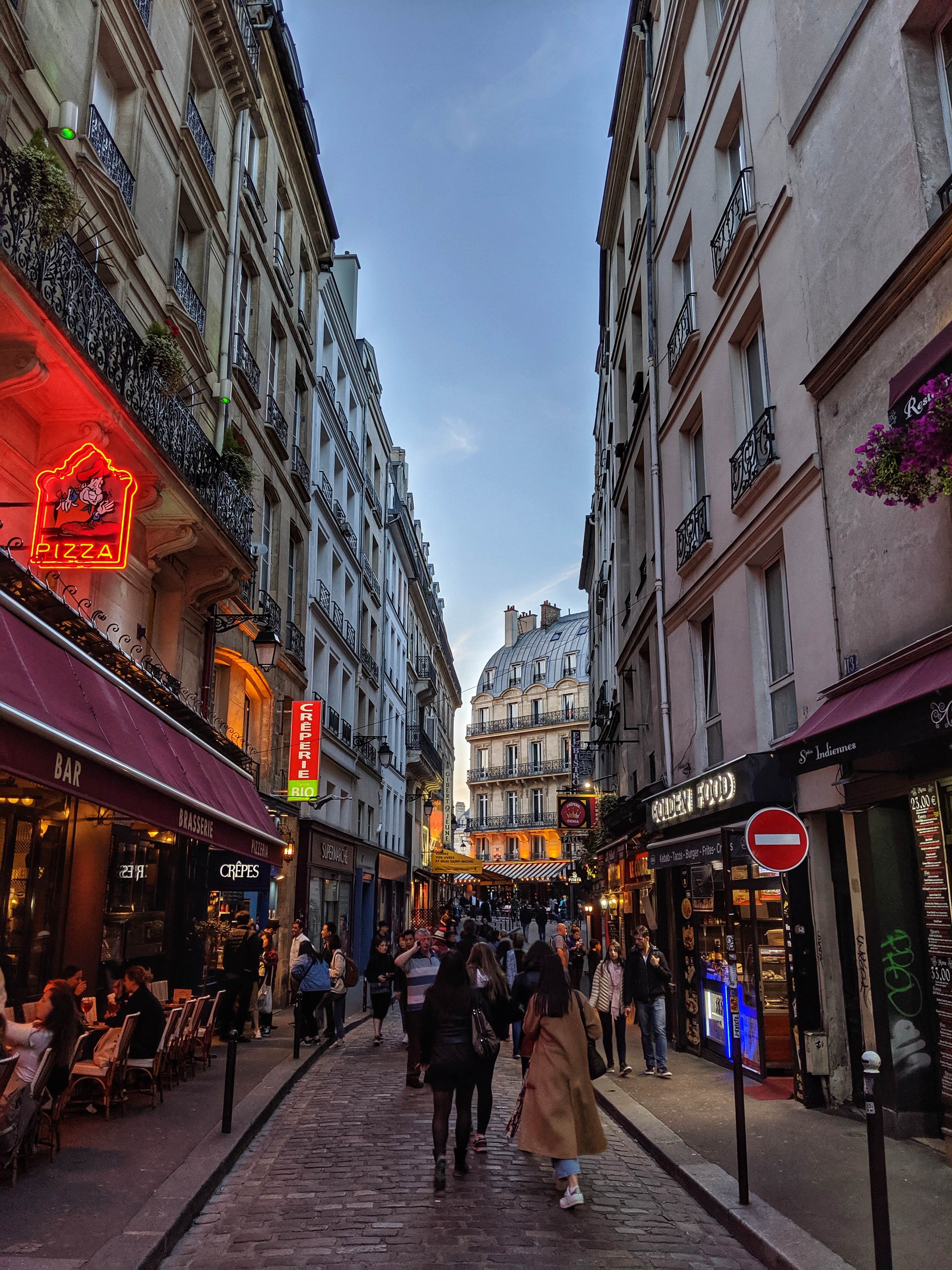 That night, our last in Paris, I was intent on checking off a couple of “musts” from my to-do list. From my previous two trips to Paris, I wanted to take Isabel to the Latin Quarter. I remember walking around there at night, eating kebabs and gelato, and weaving around street artists posted up on the corners. I remembered it being a hip part of town, and was hoping it would live up to the expectations I seemed to set for Isabel. We took the metro headed that way and wandered around. I didn’t remember it being so crowded with tourists. I couldn’t tell if my memory was off (it had been a decade) or if word just got out and the neighborhood is now saturated with interlopers.