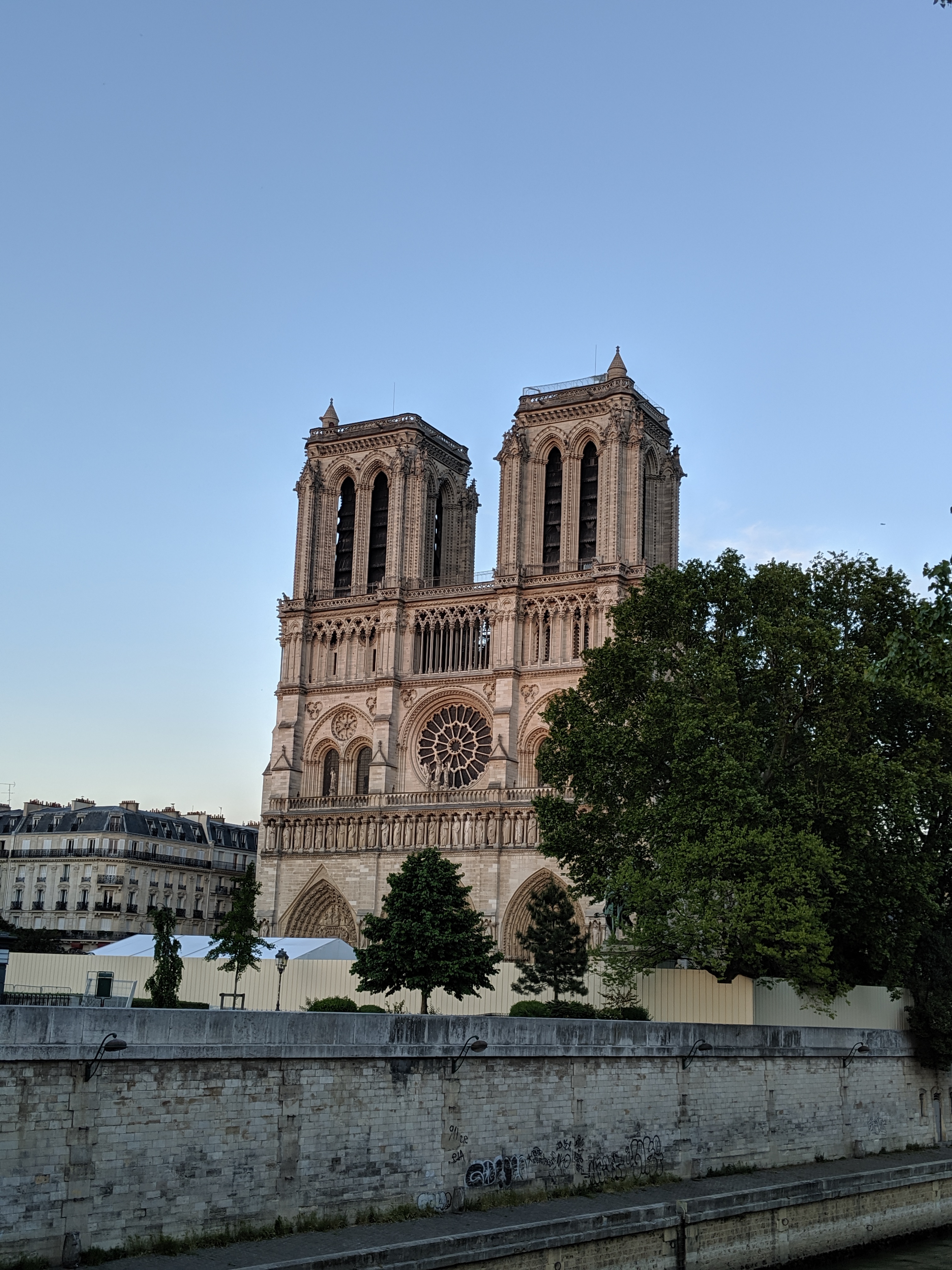 Anyway, it was still cool walking around, there were still artists doing there thing on the sidewalk, and we still got gelato as a dinner-substitute. So there. A nice added bonus that I did not recall about the Latin Quarter was its proximity to the Notre Dame. We tried walking around there a day or two earlier, but from the fire the police have the surrounding couple of streets blocked off. You can’t get close for photos. A lucky turn around the corner and we were as close as we could get, so we could still say we saw the Notre Dame in all of its (current) glory.
